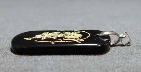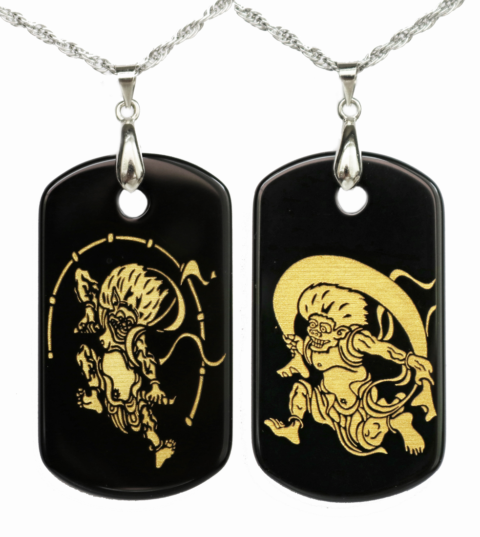 オニキスプレートに名画「風神・雷神」を彫刻した重厚なペンダント。
