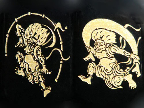 片面に風神、もう片面に雷神。表裏に風神・雷神を彫刻してます