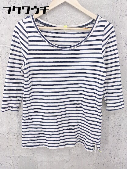 ◇ Adam et Rope アダム エ ロペ ボーダー 七分袖 Tシャツ カットソー サイズ38 オフホワイト系 ネイビー レディース