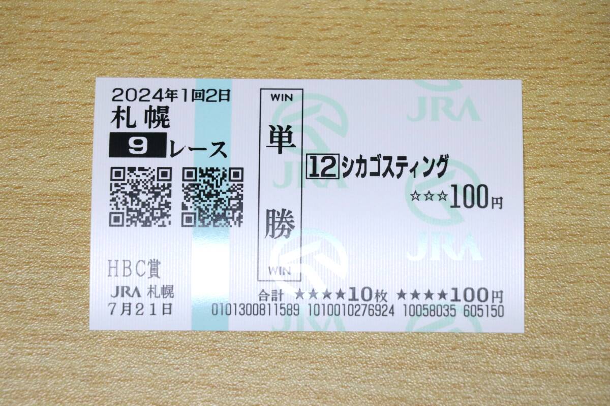 シカゴスティング 札幌9R HBC賞 (2024年7/21) 現地単勝馬券(札幌競馬場)です。気に入って頂けた方の落札を心よりお待ちしております。