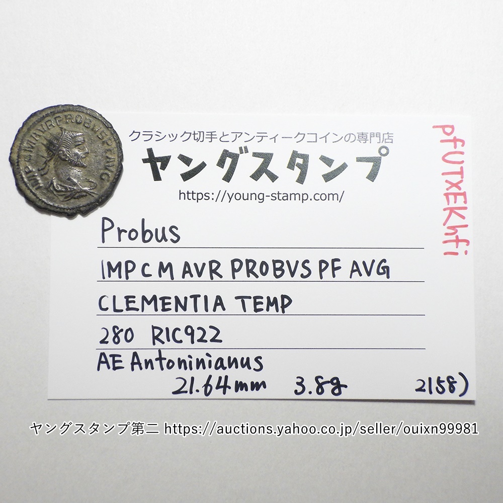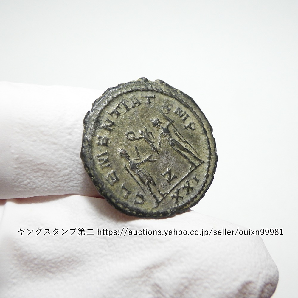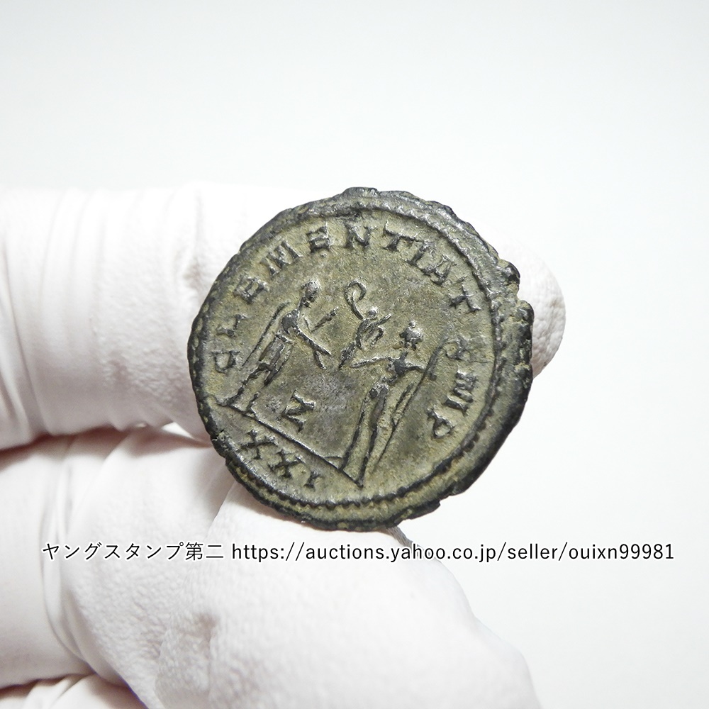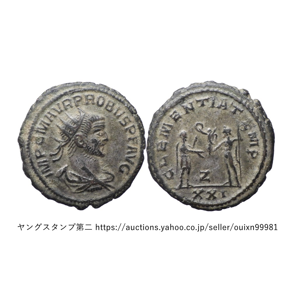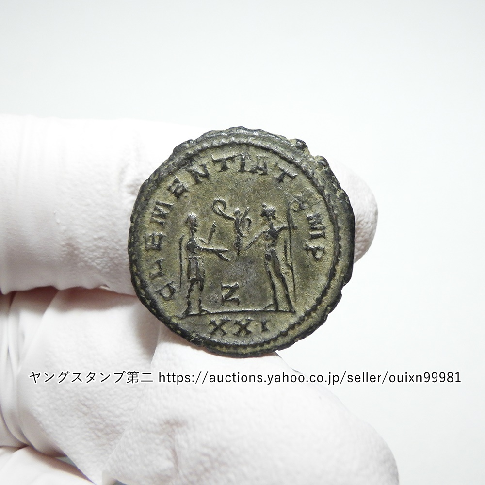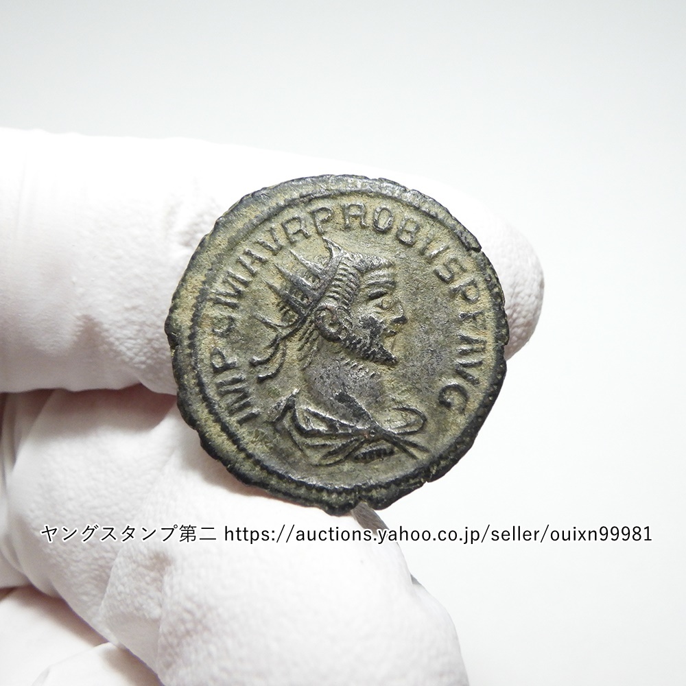 【商品詳細】 古代ローマコイン、Probus(プロブス)クリーニング済ブロンズコイン/銅貨です。 Busts : Radiate, draped and cuirassed bust right Ovberses : IMP C M AVR PROBVS AVG Reverses : CLEMENTIA TEMP Types : Probus standing right on left, holding scepter, receiving Victory on globe from Jupiter to right, holding scepter Mints : Antioch Dates : 280 AE Antoninianus 21.64mm 3.8g RIC922 【このコインについての解説】 ほぼパーフェクトなプロブスのアントニニアヌスです。両面共に鋳造時の銀メッキが表面に潤沢に残ったままパティーナが形成されているので、パティーナはそのままにして汚れだけを取り除くクリーニングを実施しました。 オブバース伝説IMP C M AVR PROBVS AVGの意味は「最高司令官 / カエサル・マルクス・アウレリウス・プロブス / 皇帝」となり、リバース伝説CLEMENTIA TEMPの意味は「平和で穏やかな(プロブスによる)治世」となります。そしてオブバースは右向きdraped and cuirassedでプロブスのオブバースとしては比較的数が少ないタイプ。そしてリバースでは右側に立っている神々の王Jupiterから天球の上に立ったVictory(勝利の擬人化)を受け取るプロブスの図案。 プロブスの金銀銅貨全てでリバースにJupiterと共にプロブスが描かれている図案は2種存在しており、1種はこのコインの物でもう1種はVictoryの乗っていない天球のみの物が存在しています。そして2400種を超えるプロブスのアントニニアヌスにおいてこのコインのタイプはミントマーク違いでわずか20種しか存在が確認されていない超希少種です。余談ですがプロブスのコインはローマ全土8カ所の造幣局で鋳造されましたがこのタイプのコインはAntiochとSisciaの2カ所でしか鋳造されませんでした。 ディテールは文句なしのハイディテール品。両面共に細部の描写までしっかりと残っており、特に真っ先に摩耗しやすいプロブスの顔の部分や描写が細かい天球に乗ったVictoryも完璧に残っています。恐らく表面の銀メッキの上にパティーナが形成された事で地中に埋まっている間十分に摩耗から守られていた事でしょう。非常に状態の良い希少アントニニアヌスという事でコレクションに幅を持たせたい方におススメします。 ※Datesに記載の年はおおよその(しかしかなり正確な)鋳造年です。 ※サイズと重さには若干の誤差がある場合があります。 ※データに誤りがあった場合はご容赦ください。画像優先です。 ※発送時には画像に写っているデータカードも一緒にお送りします。 ※カタログ番号の前にアスタリスク(*)を記載している場合は近似の番号です。 ※当店が出品しているコインはすべて本物である事を保証しています。 ヤングスタンプのローマコインガイド一覧(当店のブログ記事です) 偽物の見分け方 皇帝別レアリティランキング 識別用カタログガイド 未洗浄コインのクリーニングガイド 入札前の事前現物確認が可能です ご注意ください 一部のヤフオク出品者がNGCスラブ入りのコインを「スラブに入っているから鑑定済みの本物保証です」と謳っていますが、NGCは古代コインについては帰属と見た目の格付けしかしておらず本物かどうかの鑑定や保証は一切していません。これはNGCの利用規約に書いてあります。本家NGCが本物だと保証していないと言ってる物を勝手に「スラブ入りだから鑑定済み本物保証」と謳っている出品者にはご注意ください。また偽のNGCスラブ入り偽造コインや本物のNGCスラブの中身だけを偽造コインにすり替えた贋作も多数出回っていますのでご注意ください。 古代コインは出土後、金貨も銀貨も銅貨もほぼほぼ全てが化学薬品で洗浄されてから欧米の市場へと流通していきます。この為流通品はNGC等のスラブに入っていたとしても将来的に化学薬品による腐食(青銅病発症)リスクは否定できません。※コインの価値をゼロにしてしまう青銅病の恐ろしさも未洗浄コインのクリーニングガイドに記述しているのでご覧ください。 青銅病発症リスクを抱えている化学薬品で洗浄された古代コインを避けたい為、主にバルカン半島の遺跡発掘業者とコネクションを作り、出土したての未洗浄コインを買い付けて自ら1枚1枚手作業でクリーニングしています。化学薬品は一切使っていませんので将来的な腐食リスクは流通市場で数多のオーナー間を回遊している古代コインよりもかなり低いです。当然ですが私にクリーニングされるまでは2000年前後も地中に埋まっていたので今まで一度も市場で流通した事のない物ばかりです。 近年は収集よりもクリーニングがメインとなり、行き場のないクリーニング完了後のコインが溜まってきたのでぼちぼちと出品しています。鑑賞用の綺麗なもの、摩耗していたり傷があったとしても歴史的価値や貨幣学的価値があるものなど出品しているコインの性質は様々です。コイン収集と一口に言っても様々な収集スタイルがある様に、コインにも美醜以外の評価基準やコレクション要素があります。単に見た目の善し悪しだけではなく、個々のコインが持つ特徴や価値を最大