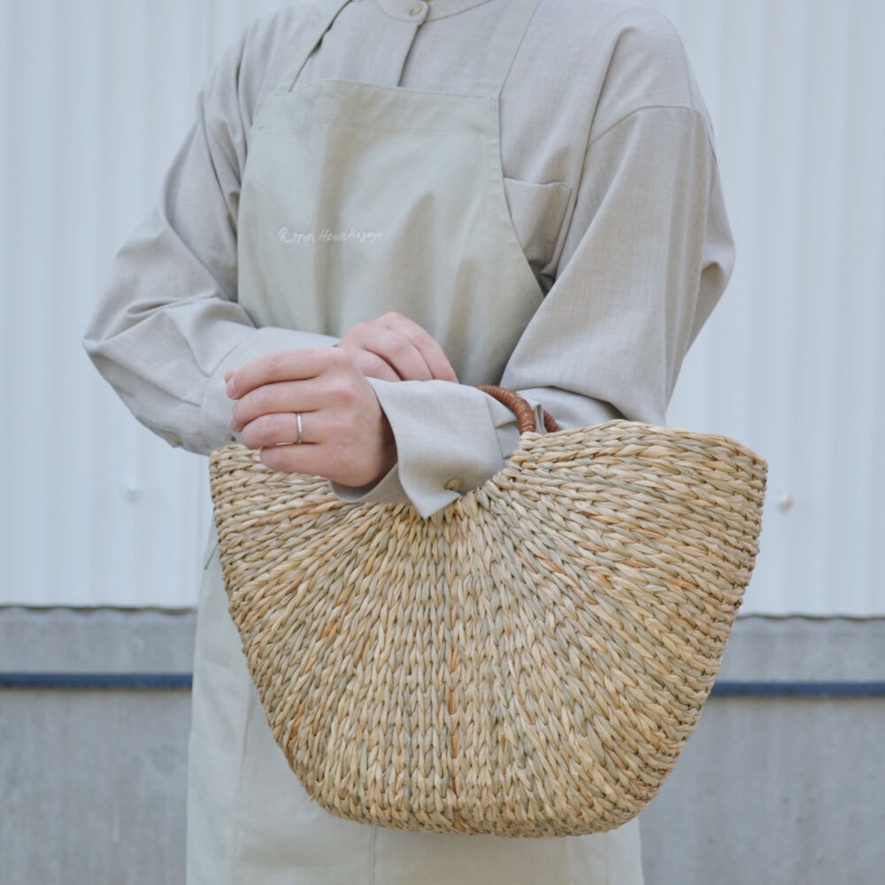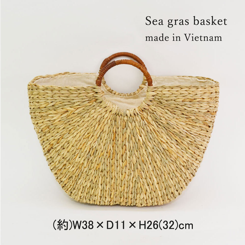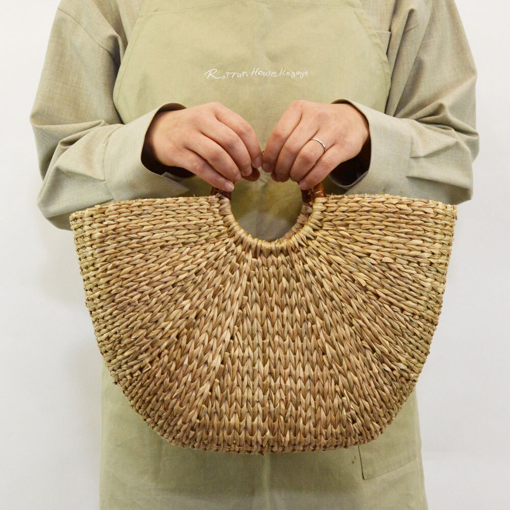 シーグラス 半円かごバッグ ファスナー 内布付き カゴバッグ