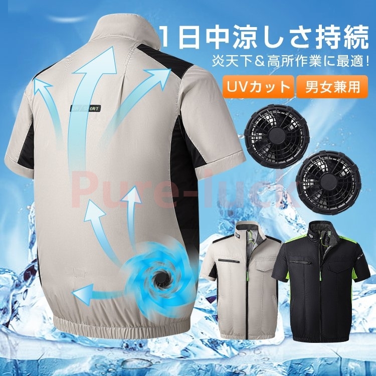 空調作業服 仕事服 空調扇風機 夏 半袖 ファン付き 大風量 USB給電 4段階風速 熱中症対策 紫外線対策 撥水加工 クールベス 男女兼用 ギフト
