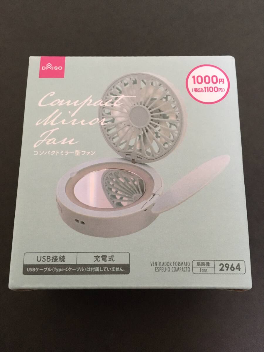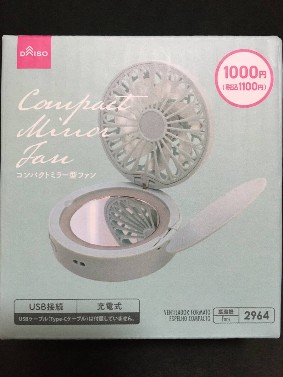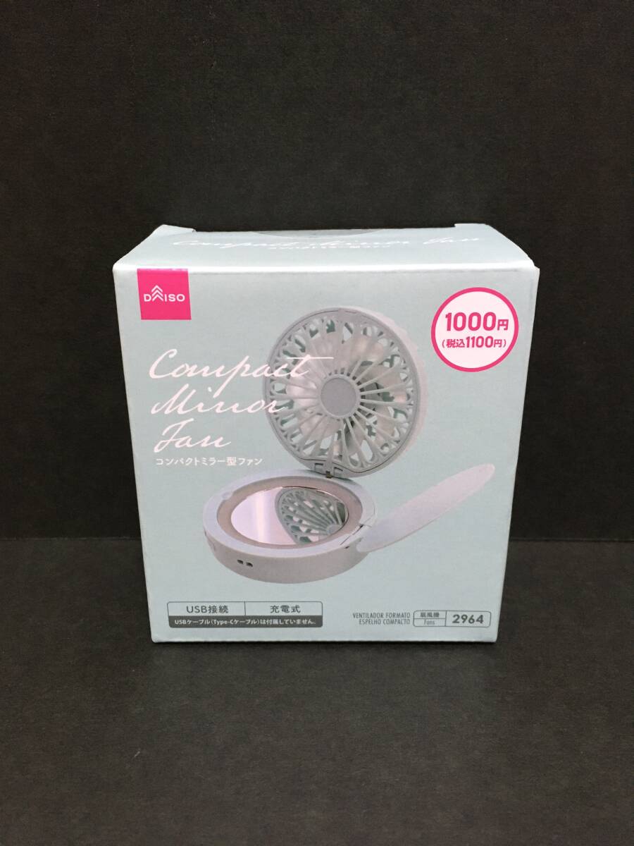 DAISO/ダイソー コンパクトミラー型ファン☆彡 ライト×ストラップ付 ブルー☆ ハンディファン 携帯扇風機 新品未開封品