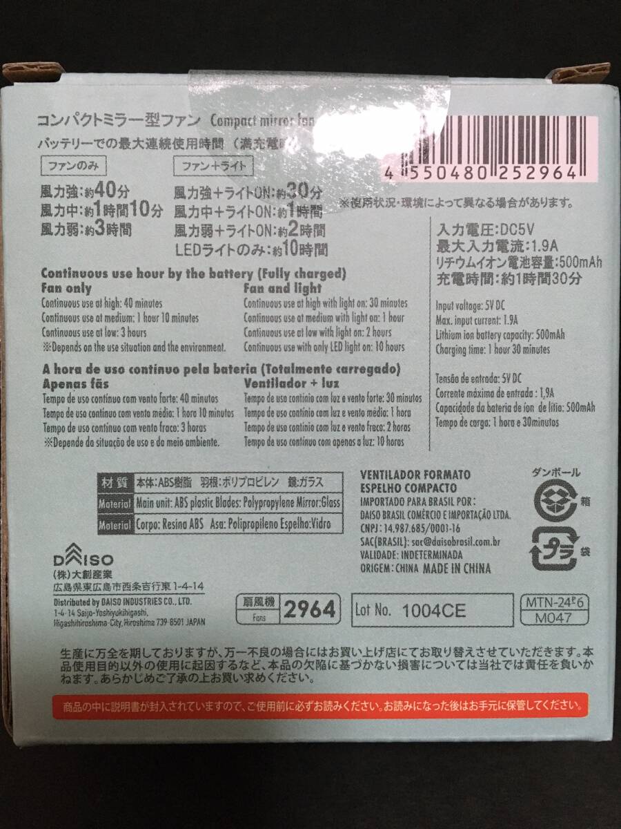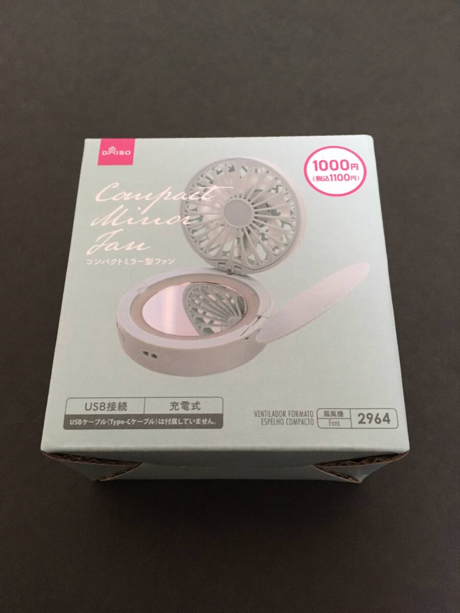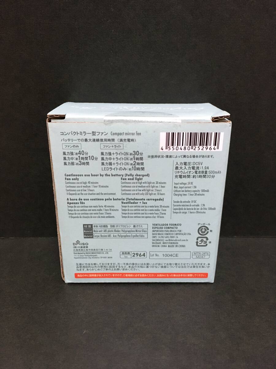 DAISO/ダイソー コンパクトミラー型ファン☆彡 ライト×ストラップ付 ブルー☆ ハンディファン 携帯扇風機 新品未開封品