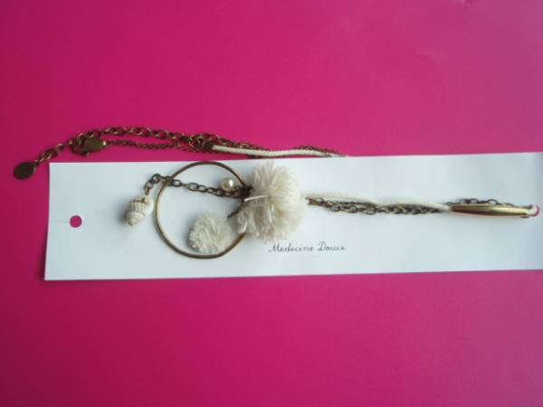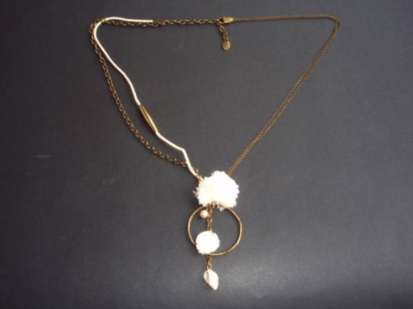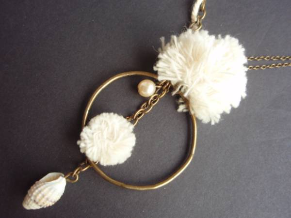 ●フランスMedecine Douce,ネックレス,白ポンポン,貝,真珠,新品,メタル●