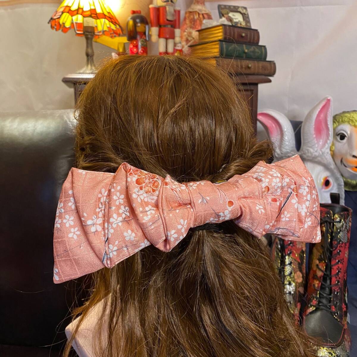 【 着物リメイク ハンドメイド ハイカラおりぼん ヘッドドレス ヘアコーム ヘアアクセサリー 和洋折衷 レトロ 和ロリータ モダン 可愛らしい和柄 R-22 】