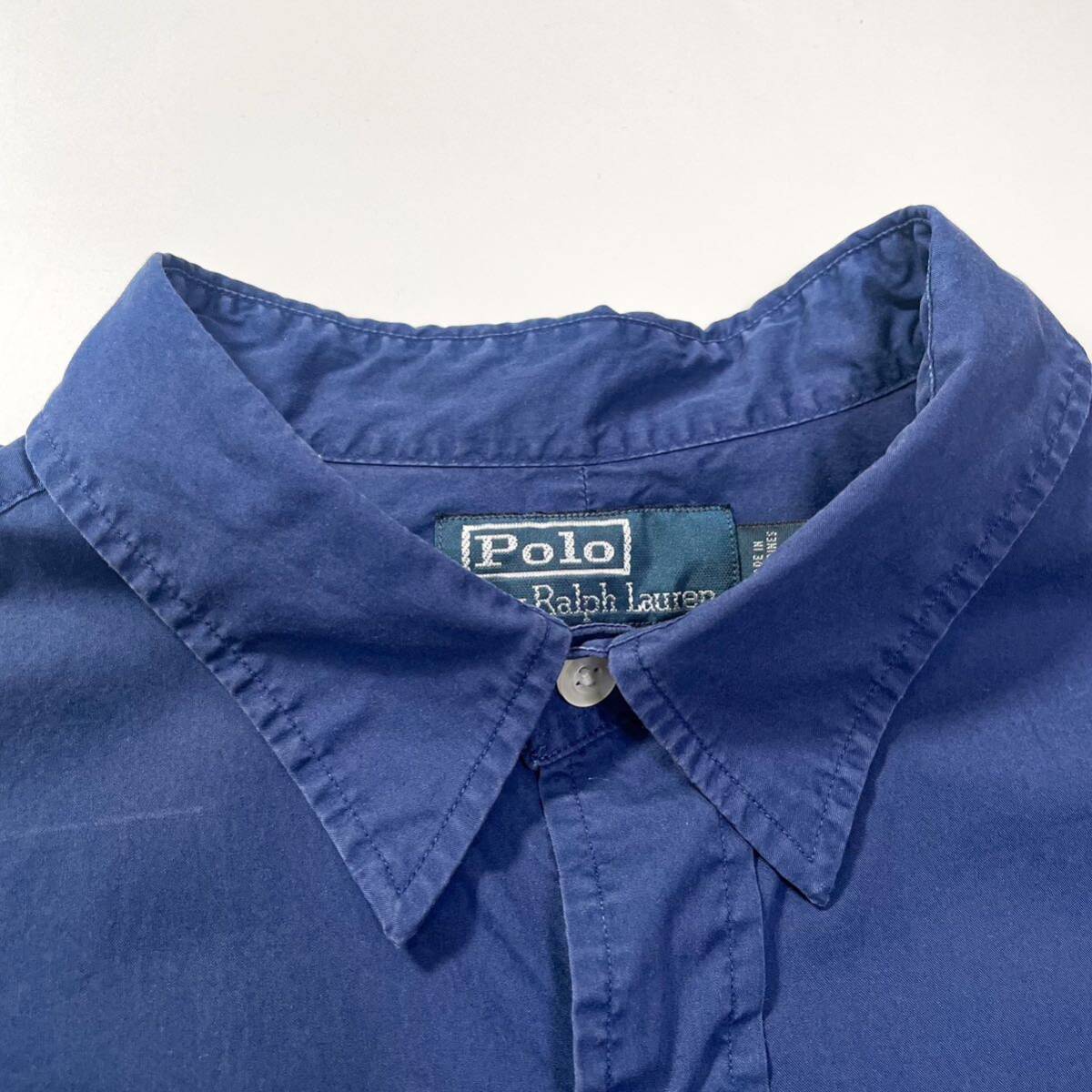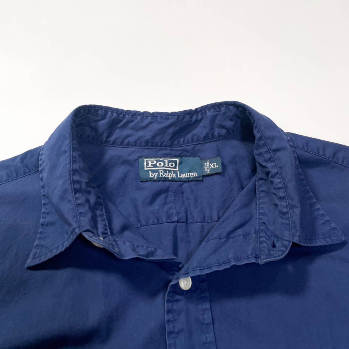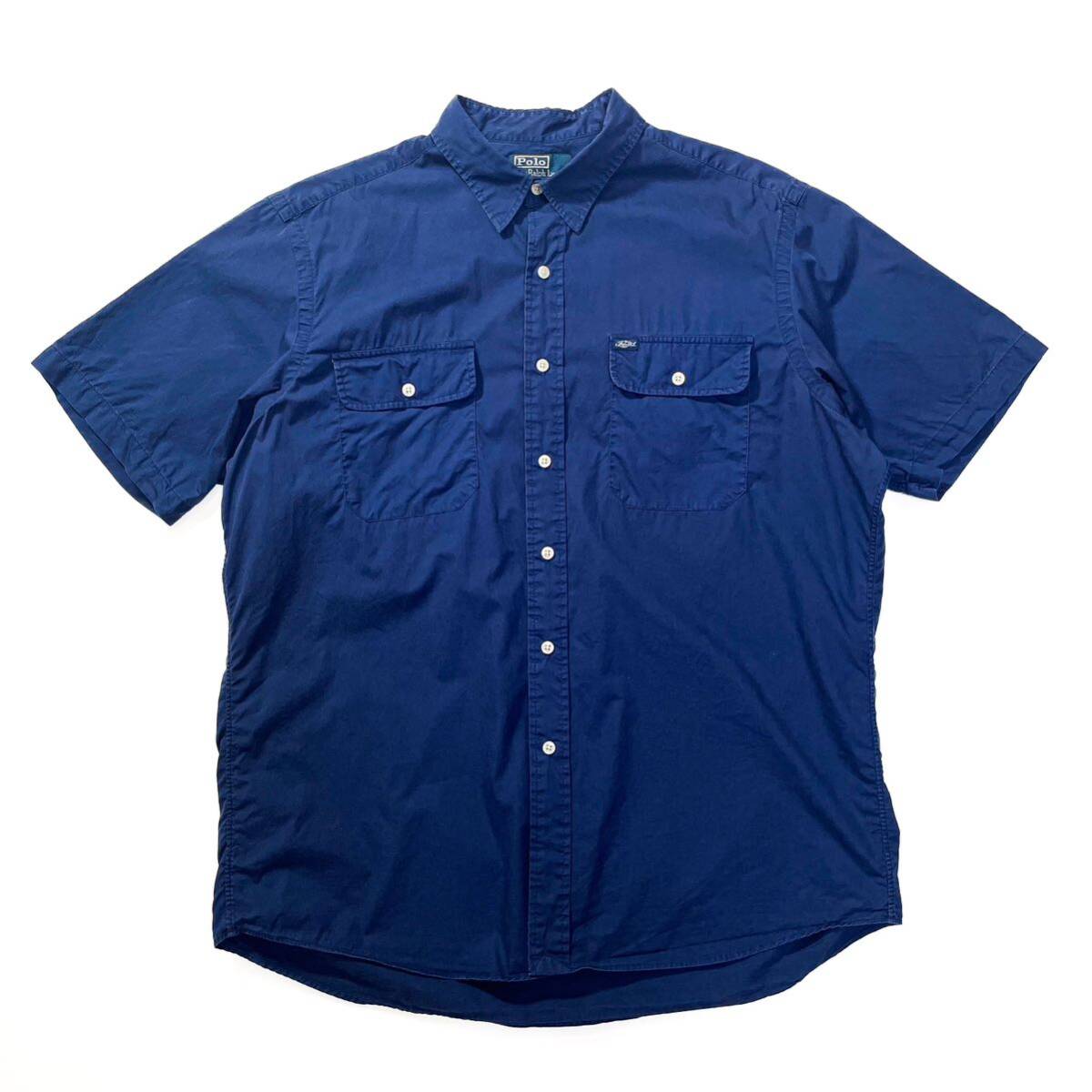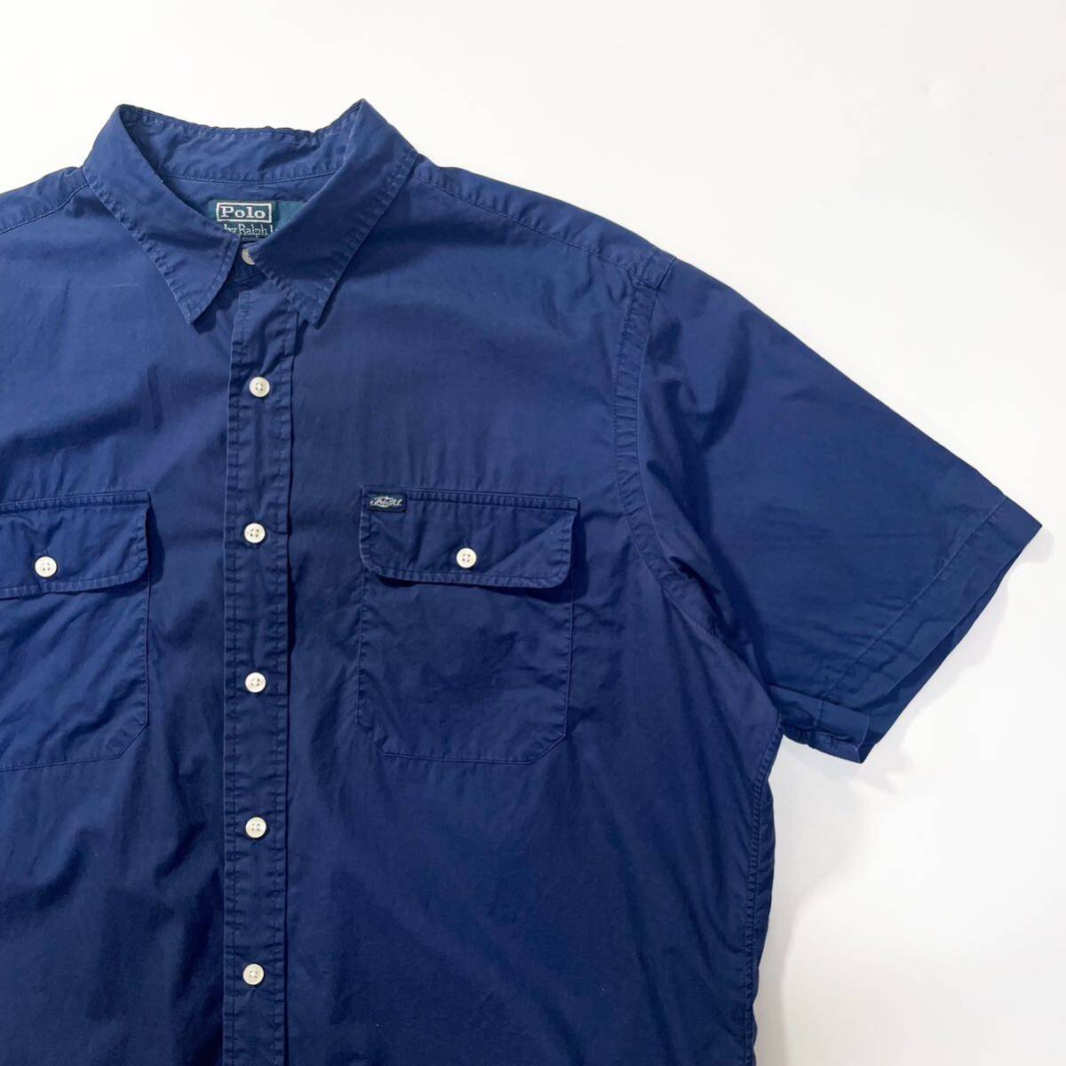 90s polo Ralph Lauen ポロラルフローレン ワークシャツ ポプリン コットン 半袖シャツ ビンテージ アメリカ製 usa old XL ネイビー RRL