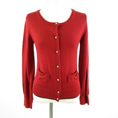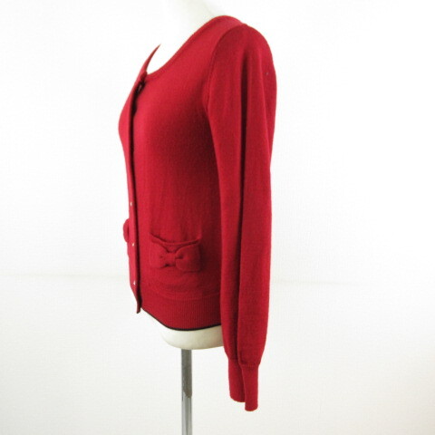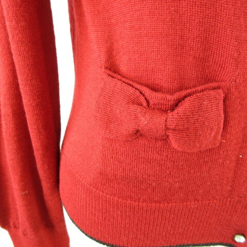 アースミュージック&エコロジー EARTH MUSIC & ECOLOGY Violel Label ニットカーディガン 長袖 リボン 赤 S *T19 レディース