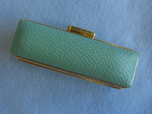 16.5ー18mm用 金色枠 牛もみ革印鑑ケース 高級朱肉付き ミントグリーン