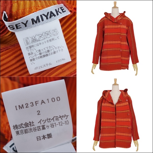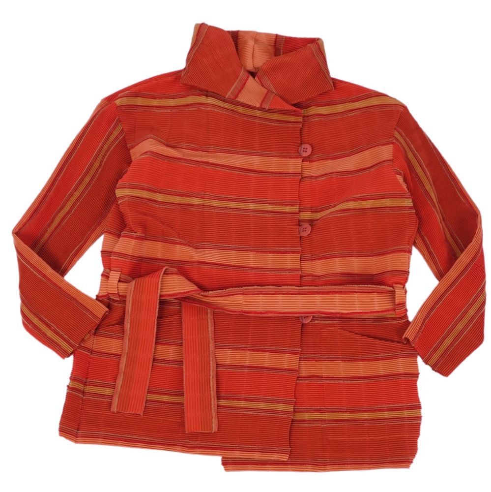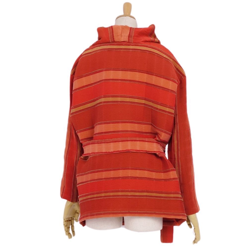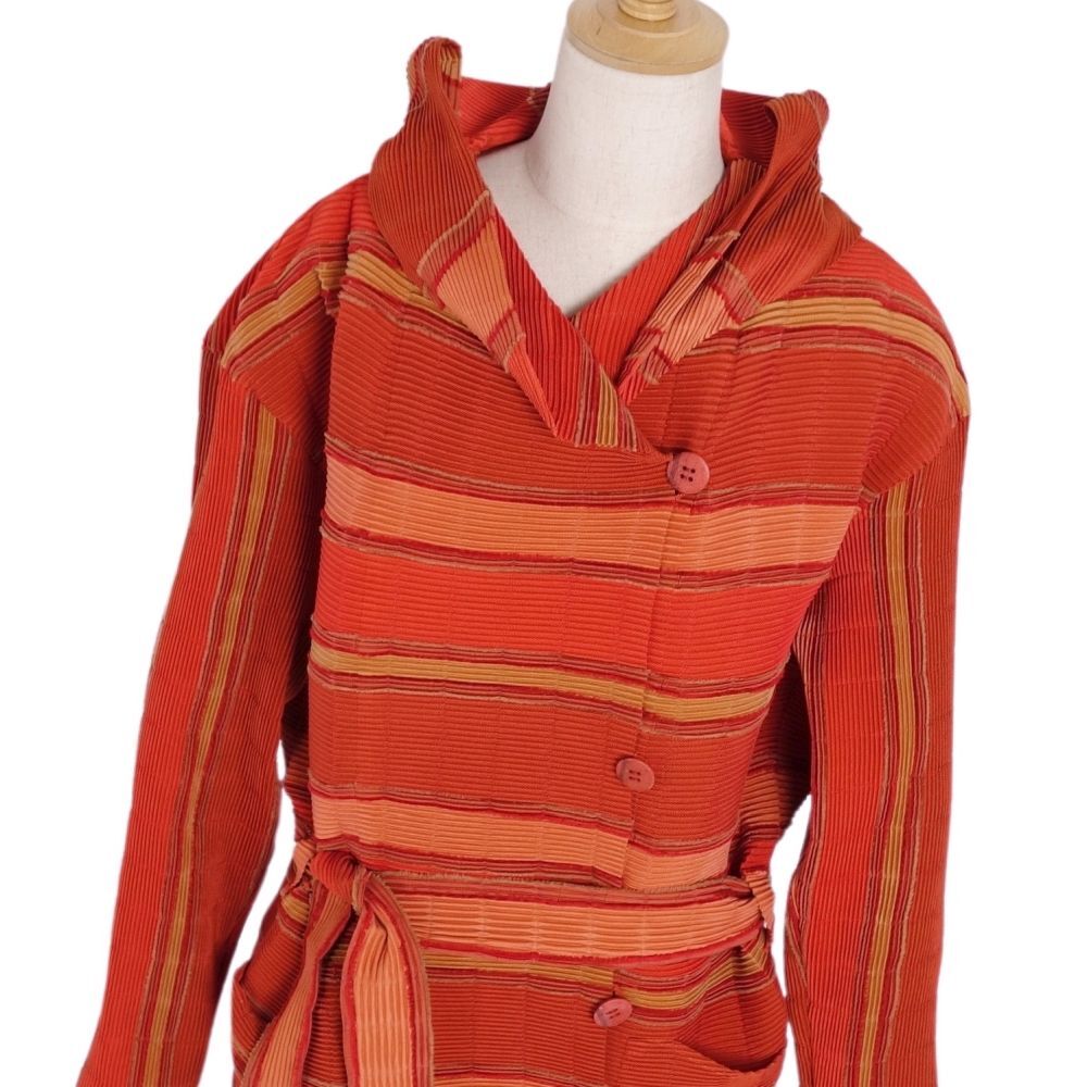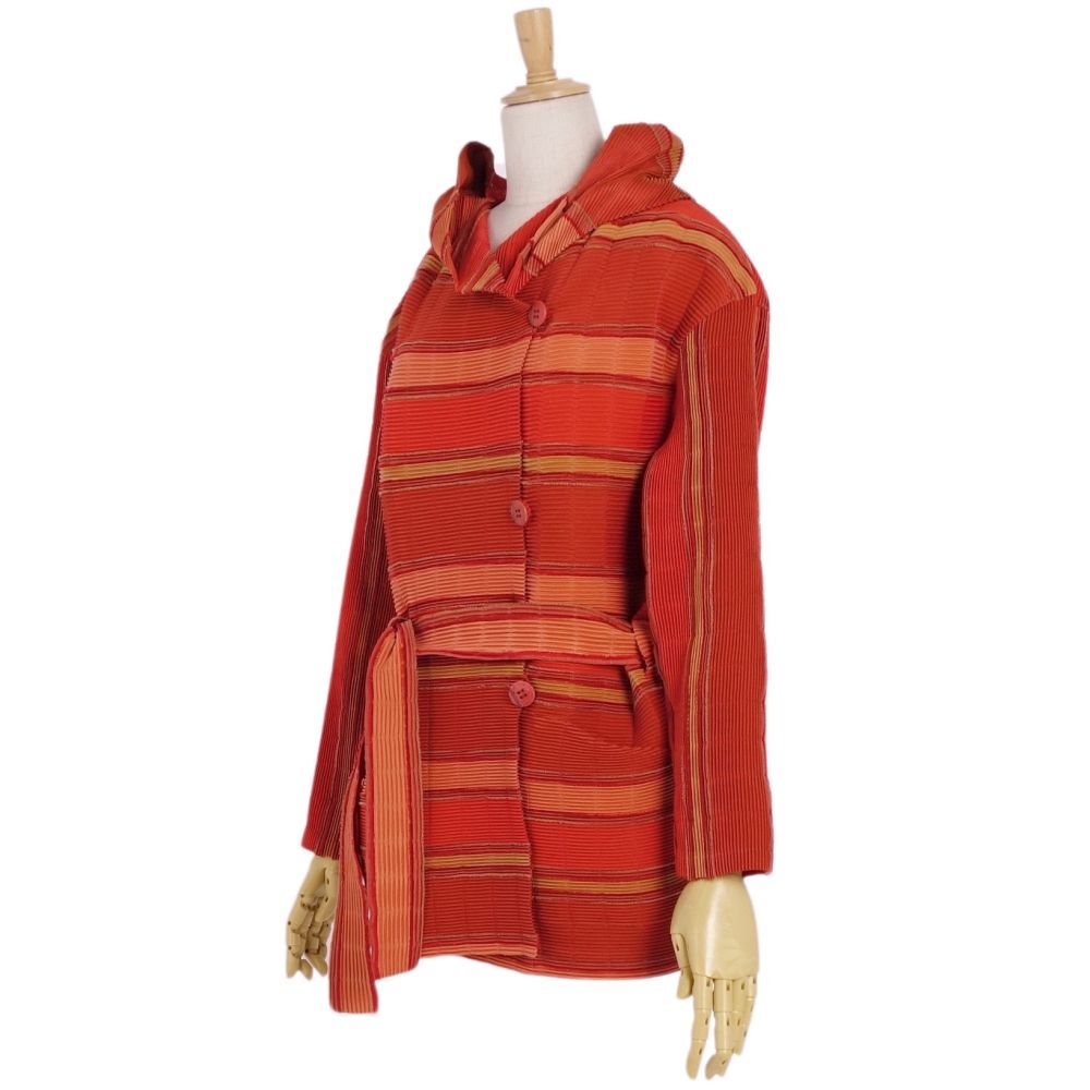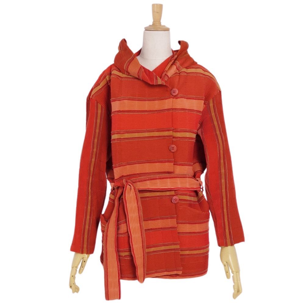 | 美品 イッセイミヤケ ISSEY MIYAKE ジャケット ロングスリーブ 総柄 横プリーツ アウター レディース 2(M相当) オレンジ |