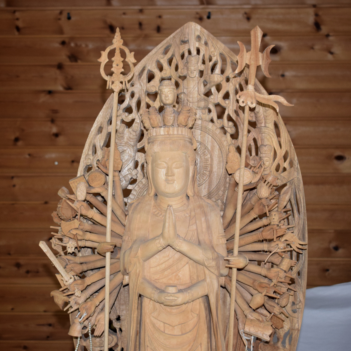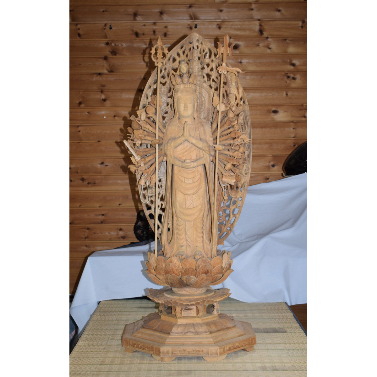 | 商品説明 | 【サイズ】 全高 約 117cm 像高 約 71cm 全体 横幅 約 48cm 奥行 約 48cm 高さ 約 117cm 材質 楠(くす) |