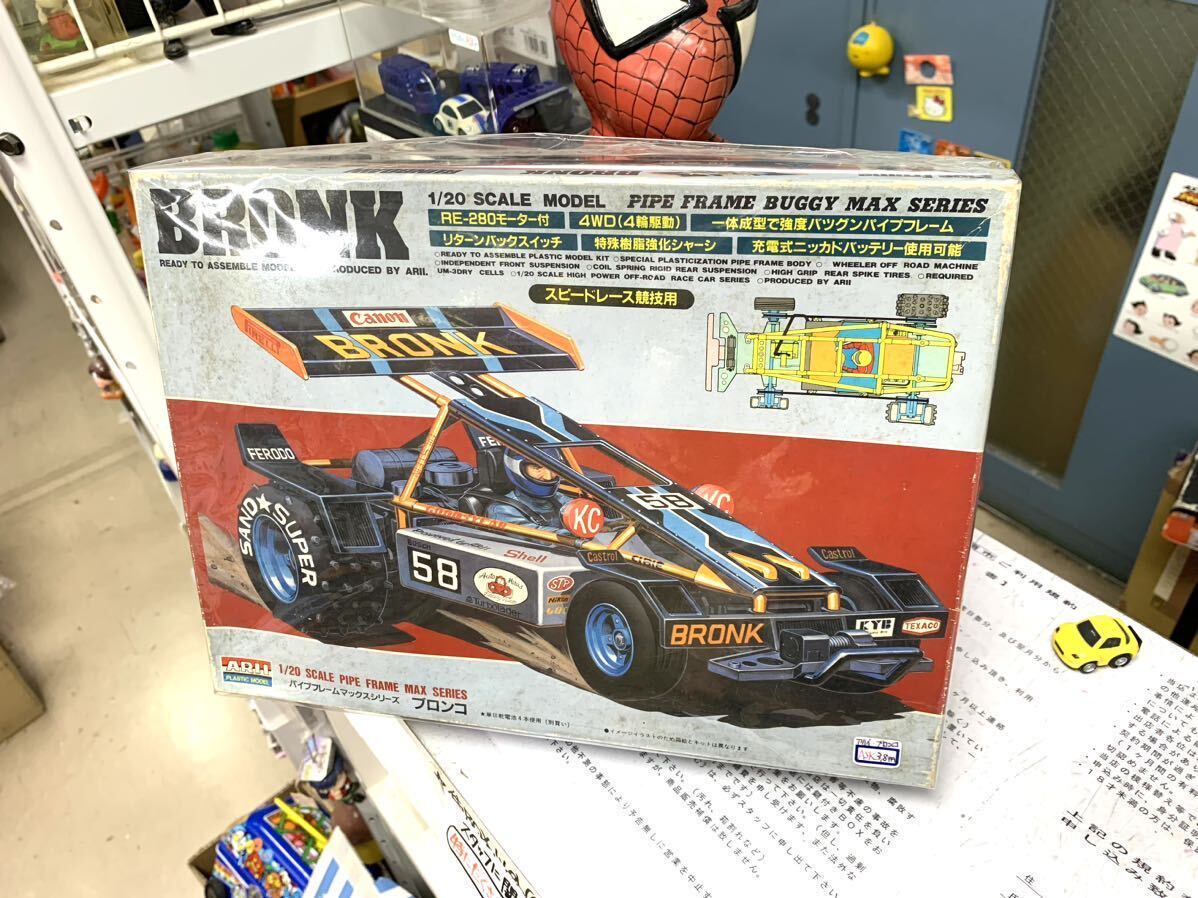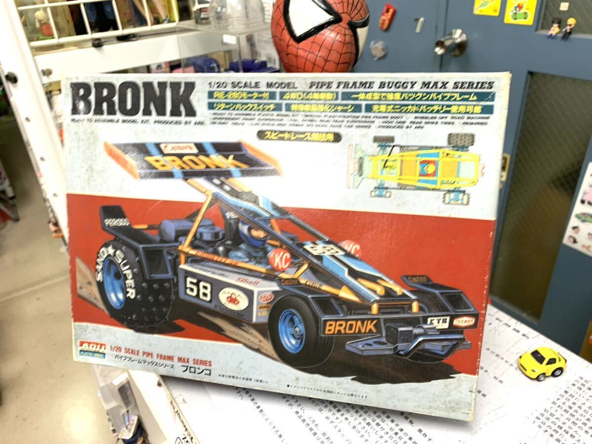 IV>●未組み立て〜保管品:現状(箱古)絶版品●1〜3枚目画像、ご覧の通りの超希少で激渋、大人気シリーズのバギーレーサー『BRONK』1機、(モーター付き保管品プラモ)を出品致します。今後の入手は、かなり難しくなりそうなお品ですが、保管品等ご了解にて、(極端に神経質な方、自己紹介欄・説明文読めない方、連絡・入金ルーズな方々は今すぐ撤退お願い致します。)・・・・・・・・◎モーターライズ ・・・・・・・・・・・★(委託~詳細不明で激レアなお品ですが長期保管品です。)、現状出品ですので、まっさらピカピカ品お求め時は他店バックヤードへお回り下さい。