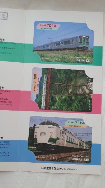 ▽JR東日本▽平成7年7月7日記念 701系・719系・715系▽記念オレンジカード1穴使用済3枚組台紙付き