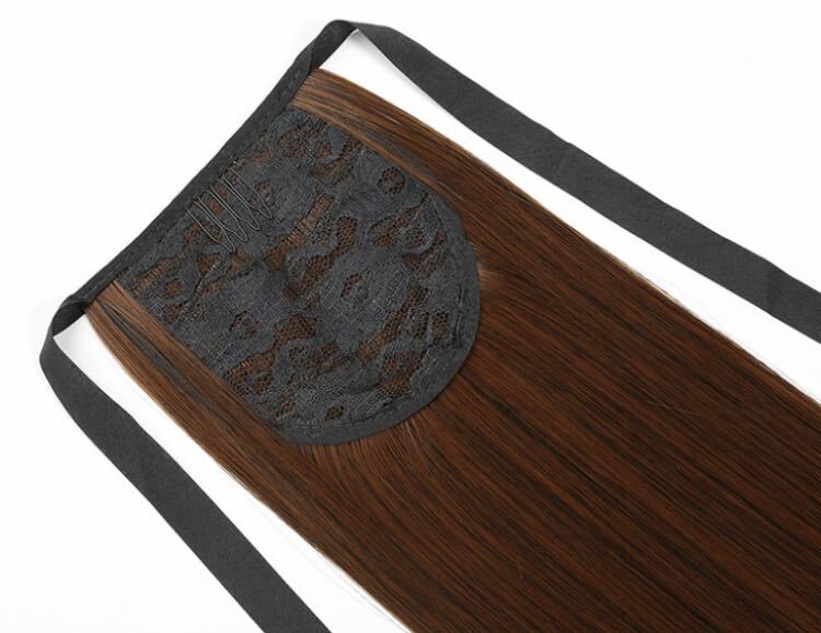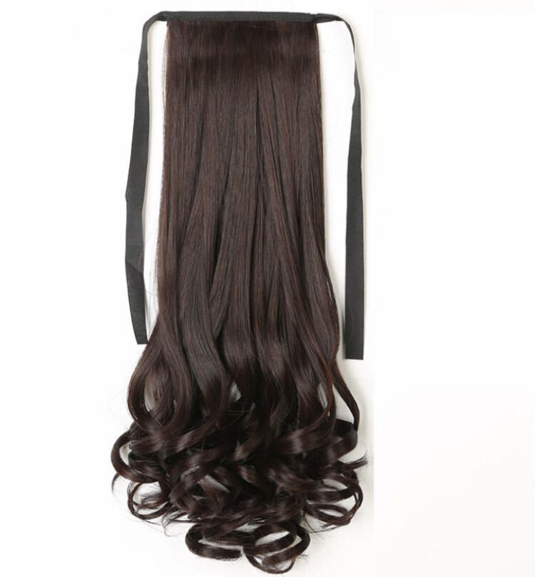 ポニーテールウィッグ 耐熱 ダークブラウン カール 48cm エクステ アレンジ