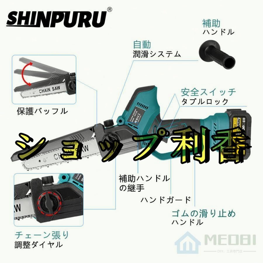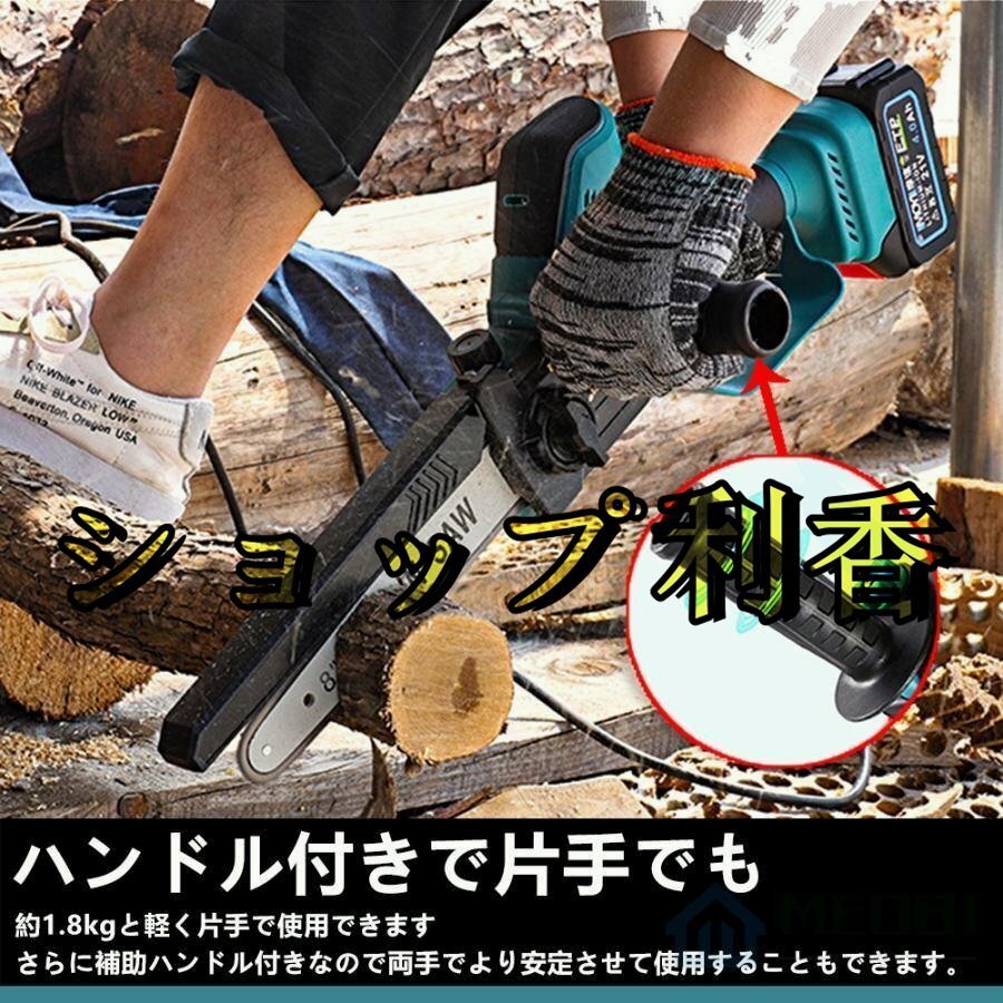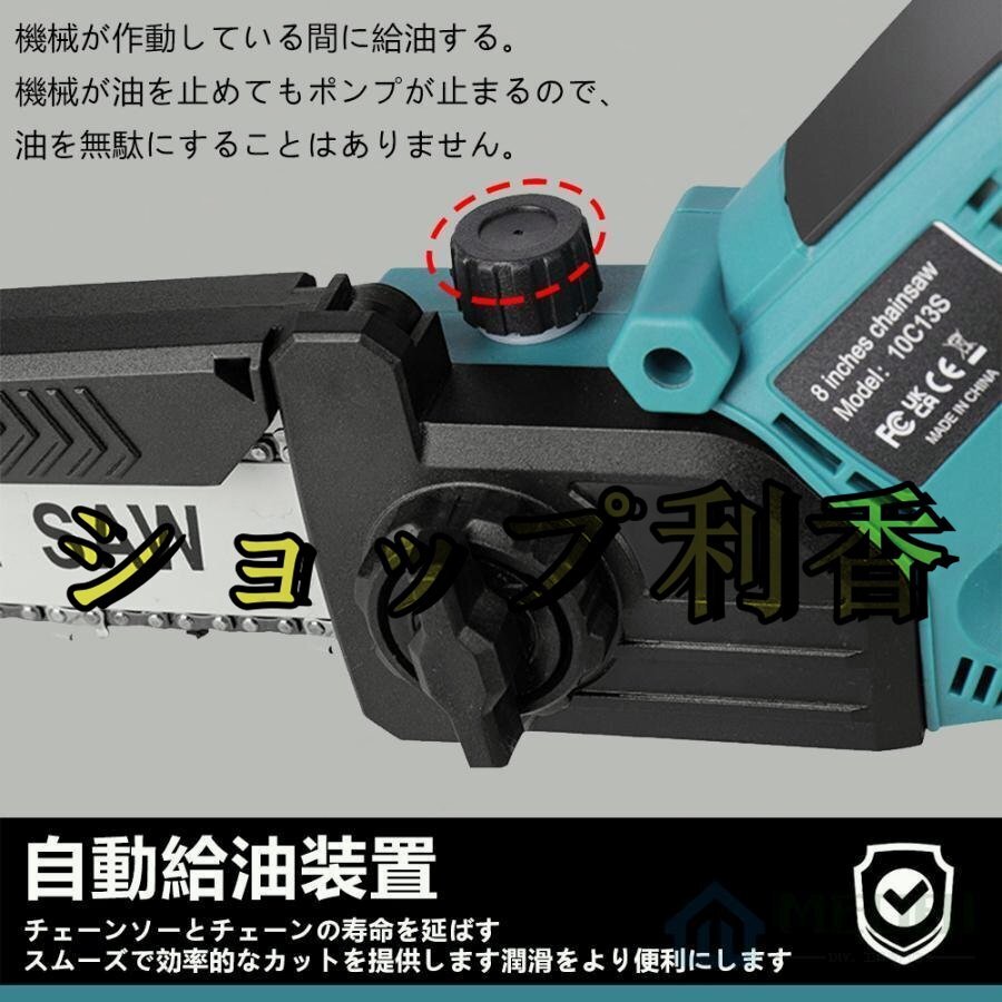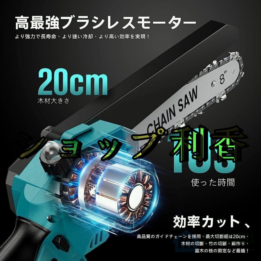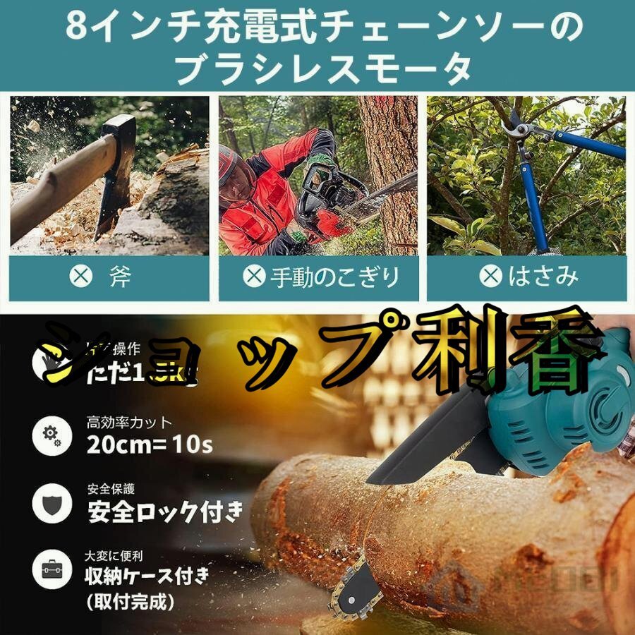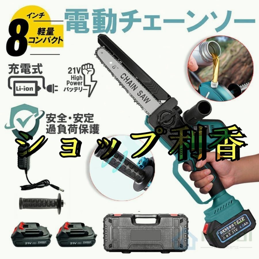 電動チェーンソー 充電式チェーンソー 8インチ 切段物径200mm ブラシモーター採用 残量表示 強力 給油可能 バッテリー*2 家庭 電動ノコギリ