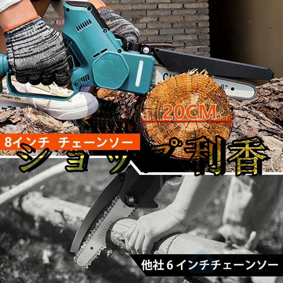 ガイドバー8インチになり、切断経20cmに達します。注:切削効率は木材の体積と硬度によって異なります。