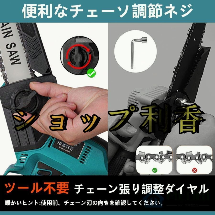 小型チェーンソーには21V 7500mAh/15000mAhのリチウム電池が追加可能、稼働時間は約25-30分/30-50分、作業中で電池切れの心配もありません。動作速度により、稼働時間も異なりますので、ご了承ください。バッテリーにはLED電力表示があり、【ミニチェーンソーはマキタ18Vおよび20Vバッテリーと互換性があります】