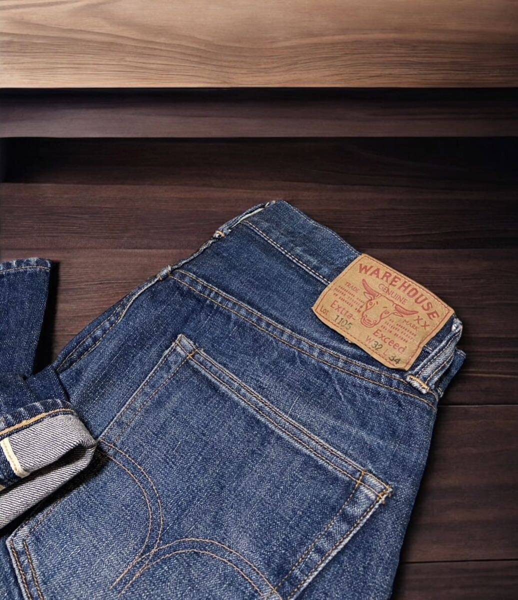 BRAND NAME:WAREHOUSE ウェアは 1105 42タロン ジッパーフライ セルビッジデニムパンツ★32サイズ★