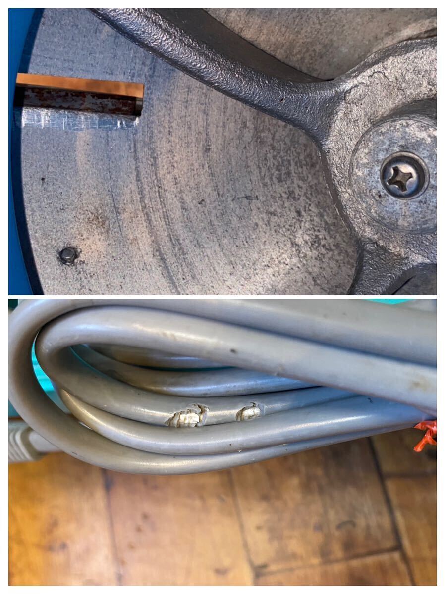 商品説明 | メーカー:CHUBU 型番:HC-7 サイズ:約幅34×奥37.5×高50cm 素人採寸となります。 中古品ですので傷や汚れがございます。 刃にさび付きがございます。刃については現状扱いとさせていただきます。(画像の10枚目をご確認ください) 電源コードの表面が削れております。(同じく画像10枚目にてご確認ください) 付属品は画像にあるもので全てです。 両サイドの取手部分のカバーがなくなっているかもしれません。 現物をご覧になりたい方はご来店の3日前までに質問欄か弊社までご連絡をお願いいたします。 リサイクルショップアクアHP https://re-aqua.com/ 注意事項・発送方法をよくご確認の上ご検討お願いいたします。 | |