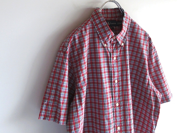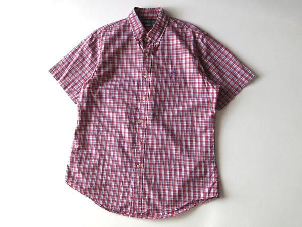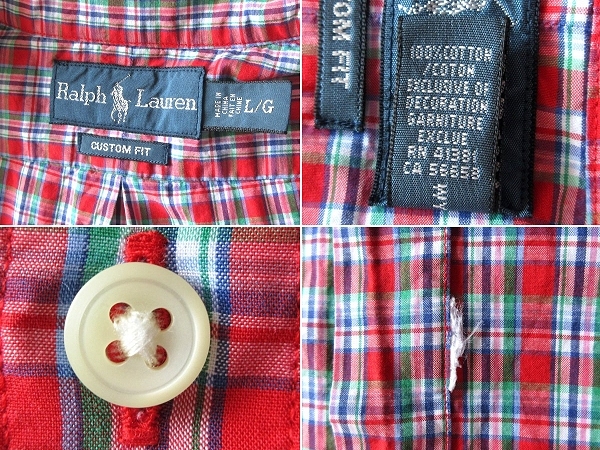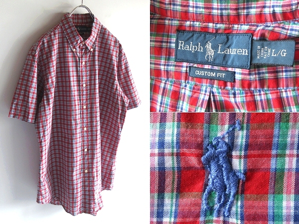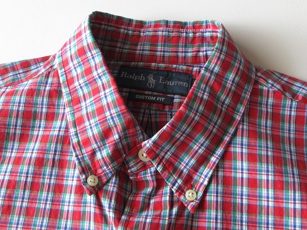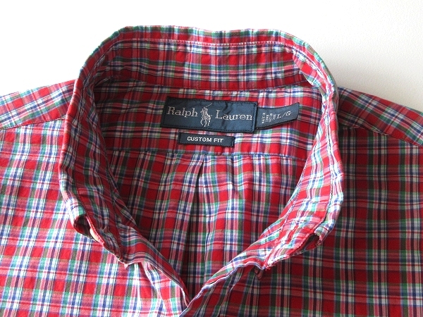 希少 00sビンテージ Ralph Lauren ラルフローレン CUSTOM FIT ポロポニーロゴ刺繍 コットン チェック BDシャツ L 赤 USA企画 ネコポス対応