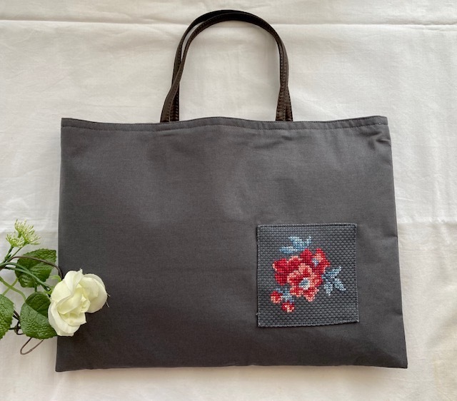 ハンドメイド・バッグ・サブバッグ・クロスステッチ・お花