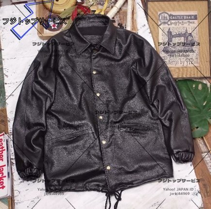 コーチジャケット カウハイド 70\'s ブラック サイズ選択可 ウインドブレーカー スポーツ レジャー バイカー ブルゾン レザー牛革
