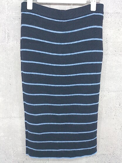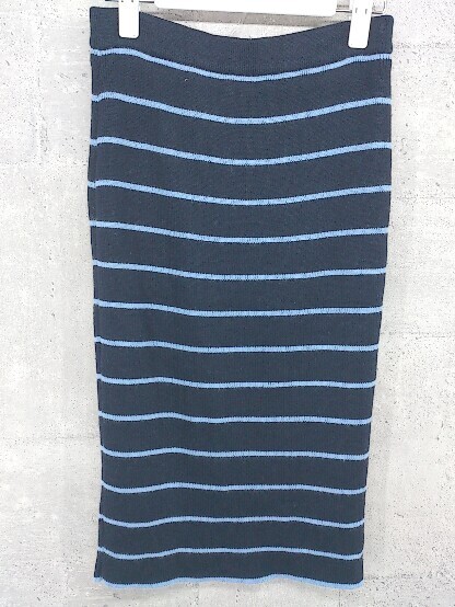 ◇ FRAY I.D フレイ アイディー ボーダー ウエストゴム 膝下丈 タイト ニット スカート サイズF ネイビー レディース