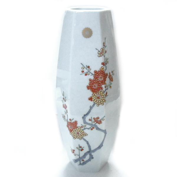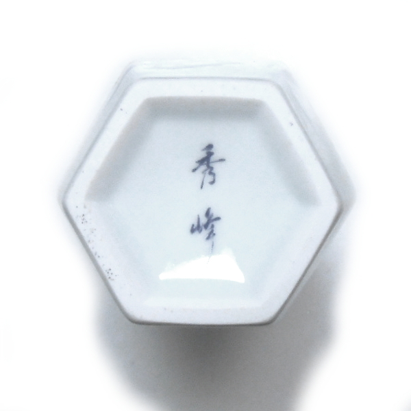 ご覧いただきありがとうございます。当商品は、有田焼 秀峰 花瓶 花文様です。大きさは、直径約8.7cm×高さ約14.0cm。底径が約6.1cmです。190905R