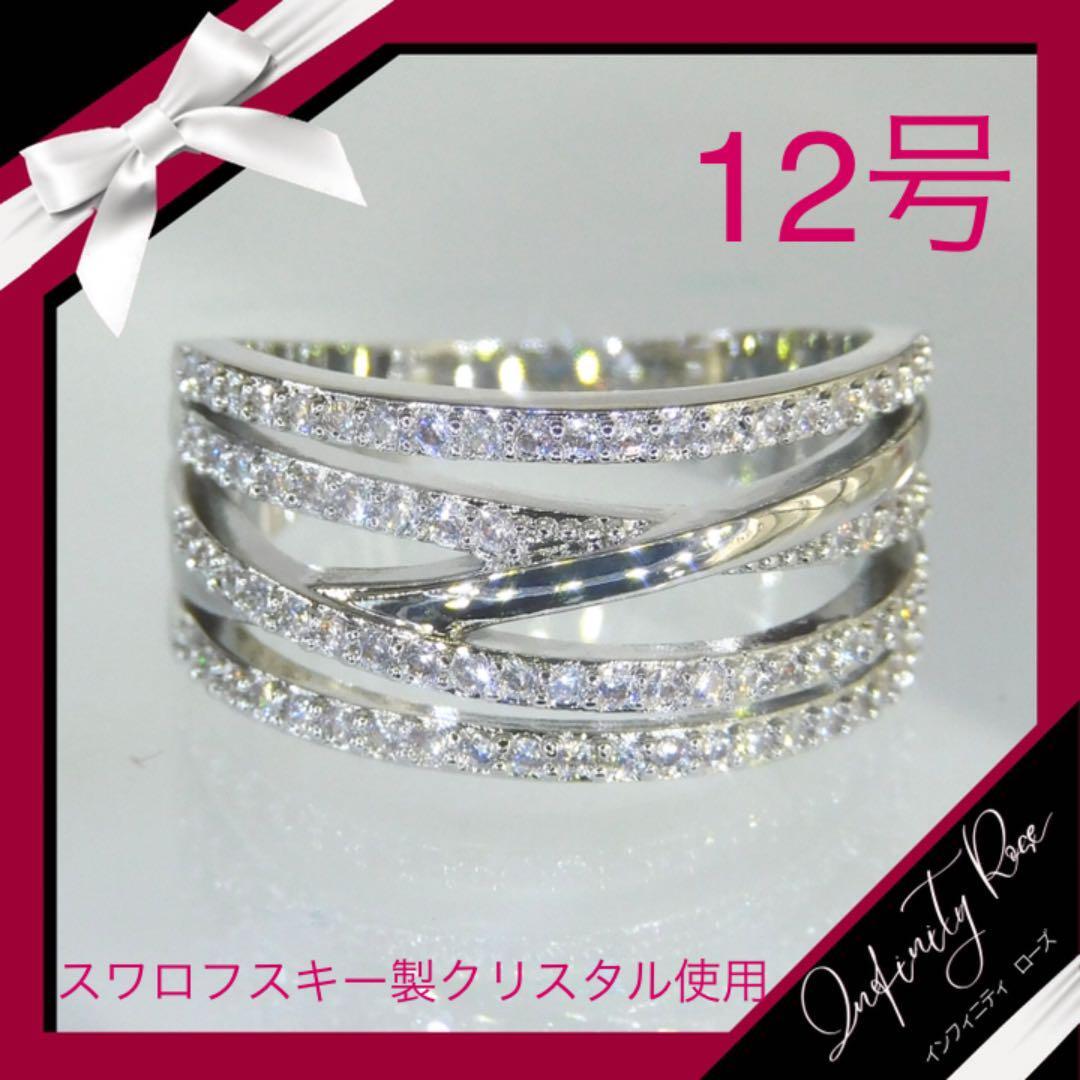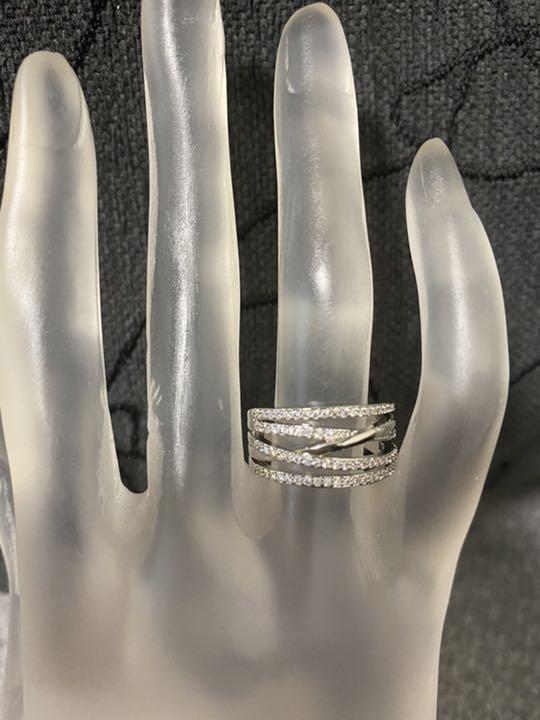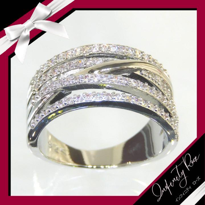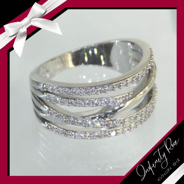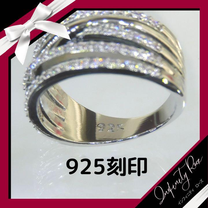 (1191)12号 シルバー5連クロス高価爪留めワイドリング 指輪 925刻印 シルバーコーティング