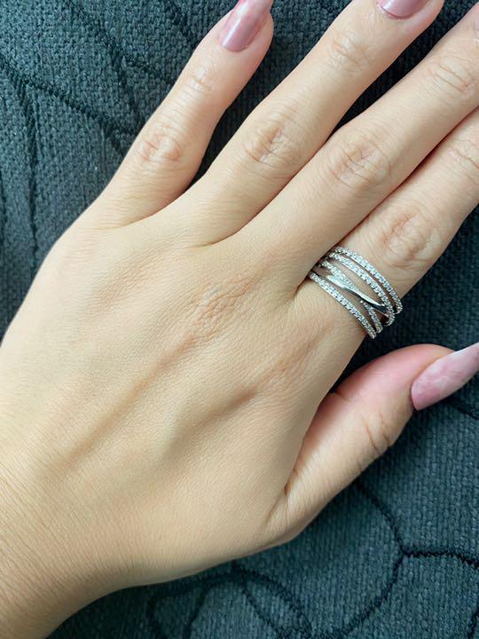 #シルバー5連クロス高価爪留めスワロワイドリング