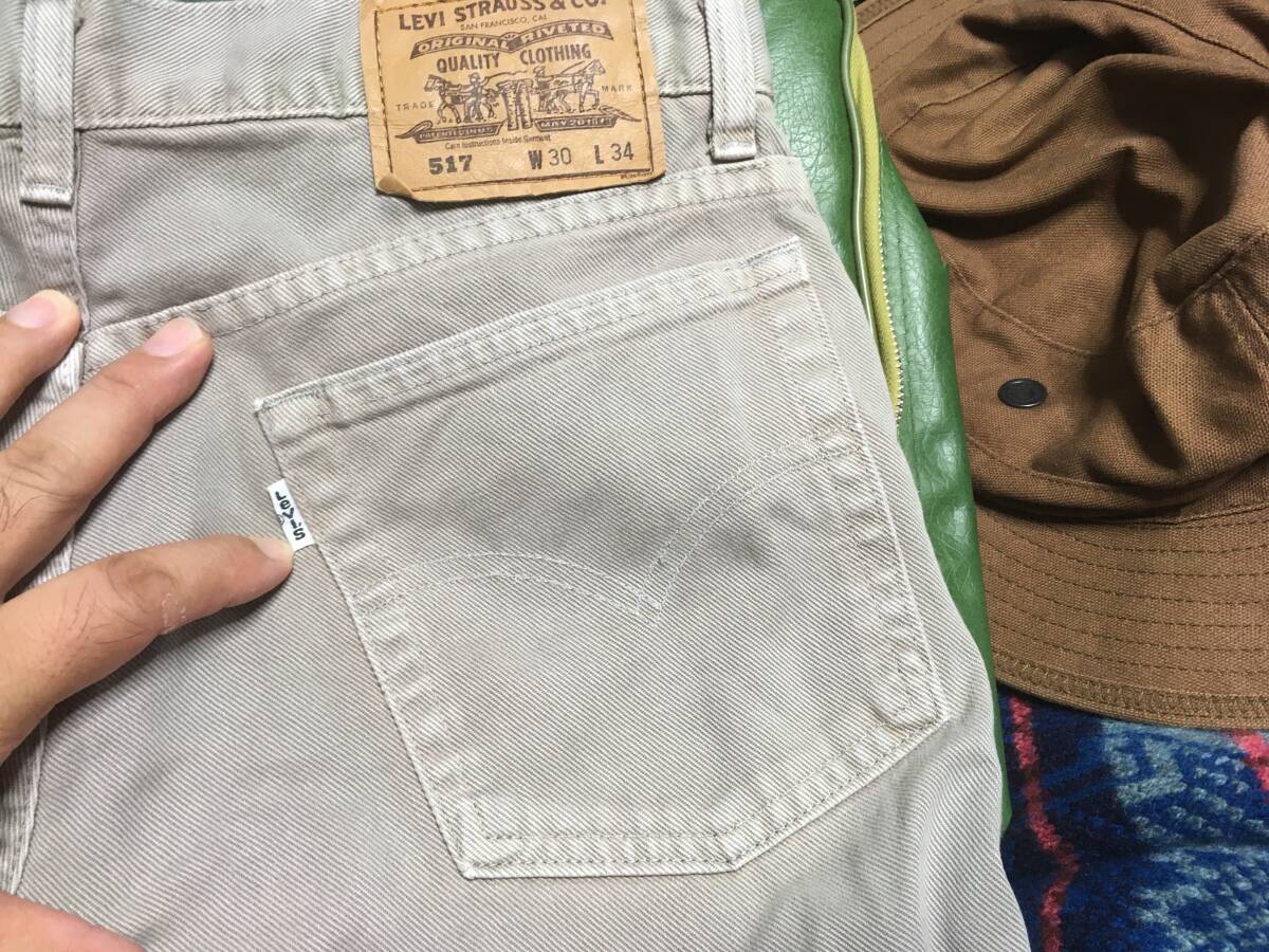 2407日本製LEVI'Sリーバイス517カラー ツイル フレア ジーンズW30パンツBEIGEベージュ ブーツカット ベルボトム ビンテージ レプリカ