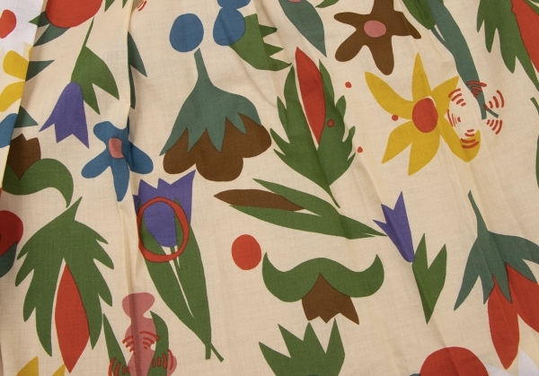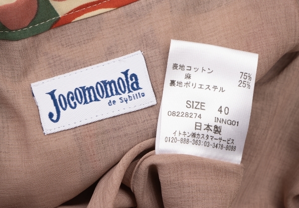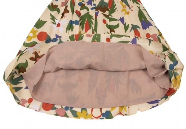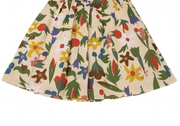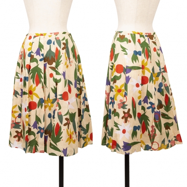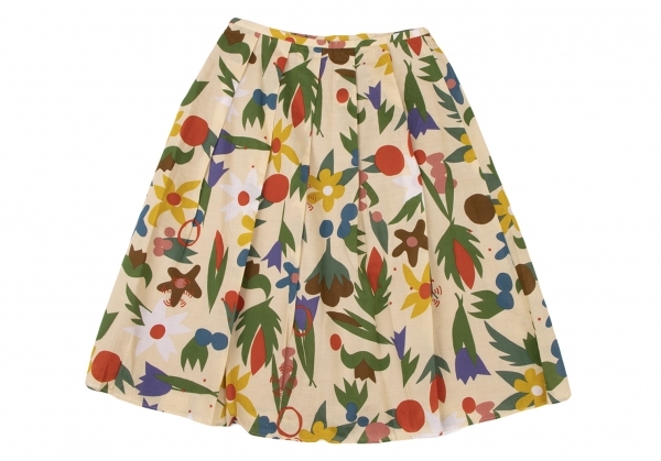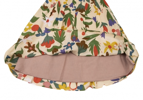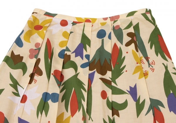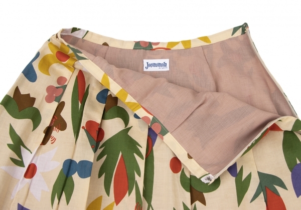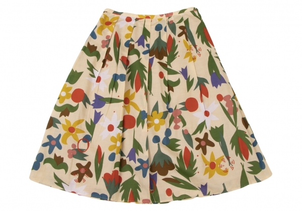 ホコモモラJocomomola コットンリネンフラワープリントプリーツスカート ベージュマルチ40 |