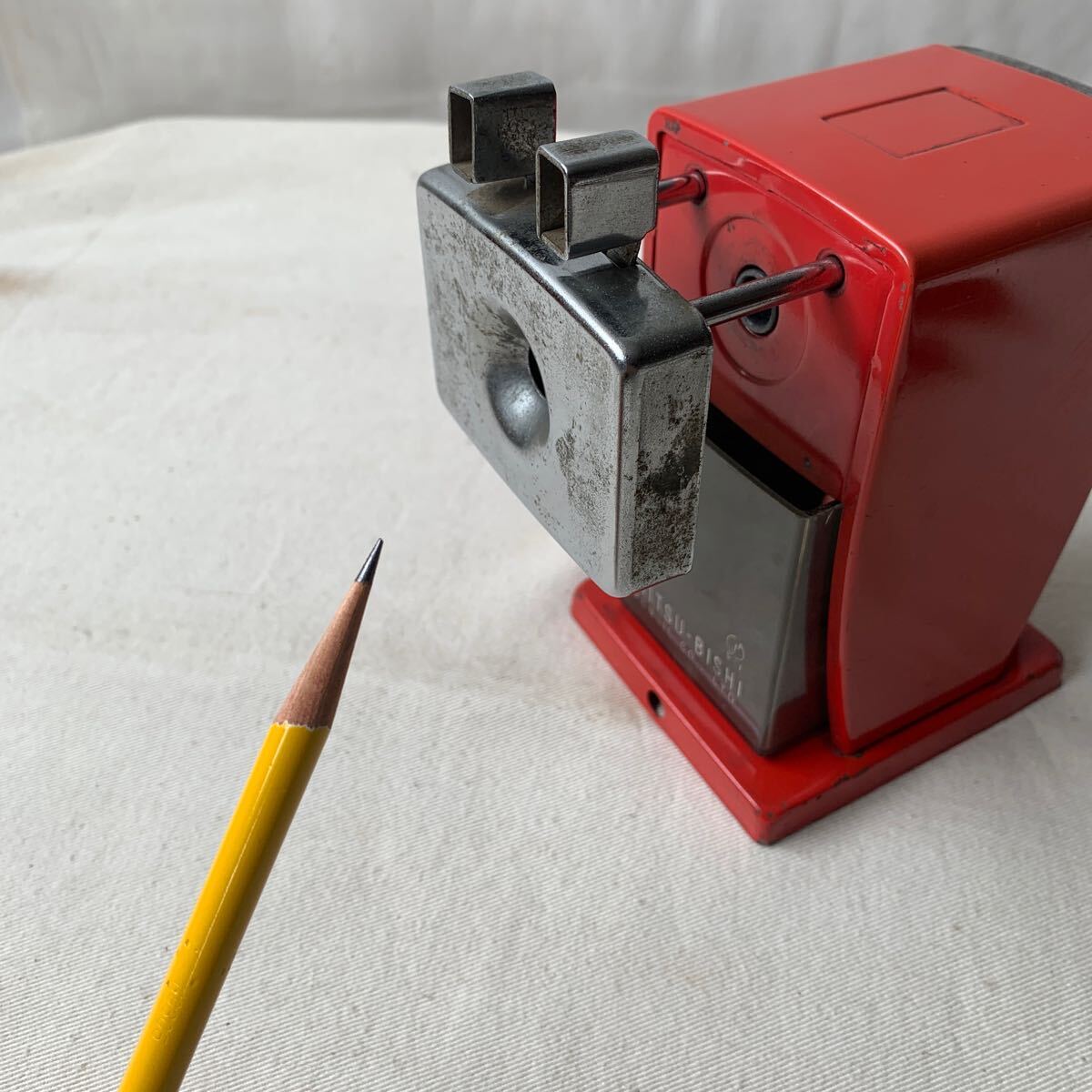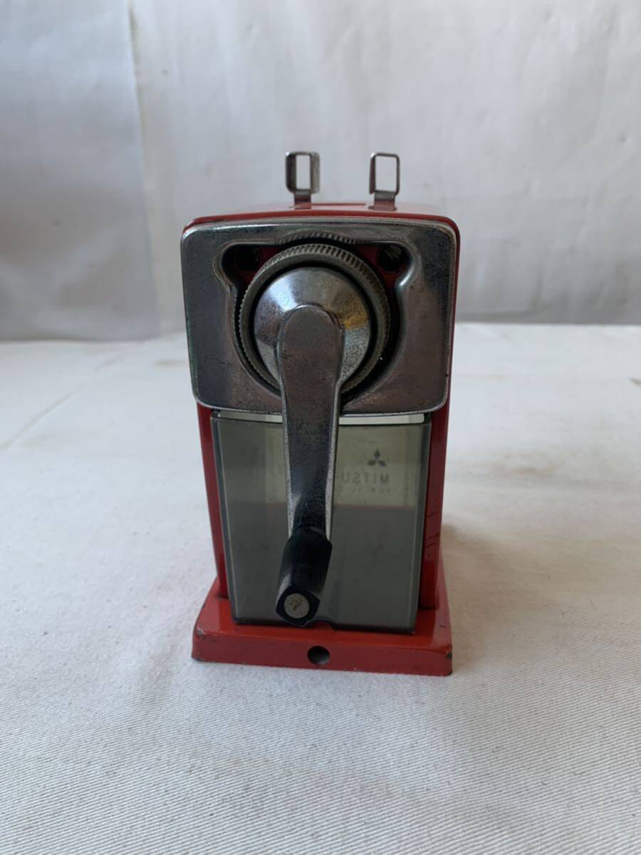 経年の雰囲気が素敵な三菱製のアイアン製手動鉛筆削りです。画像の通り削れます。お部屋のインテリアやお店のディスプレイ、イベント出店時の什器などにいかがでしょう。