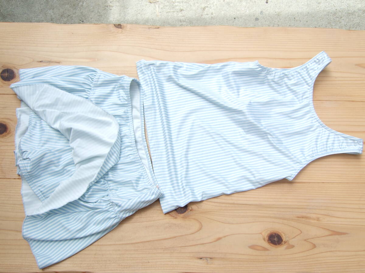 *美品!キッズ女の子水色ストライプセパレート水着160センチ2点セット*