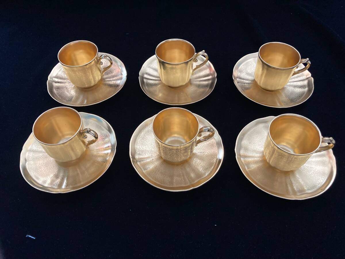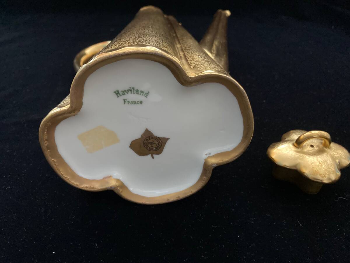 稀品! リモージュのカップ&ソーサー6客と金彩のポット、ケーキ皿、花瓶、シュガー入れ、ミルク入れ