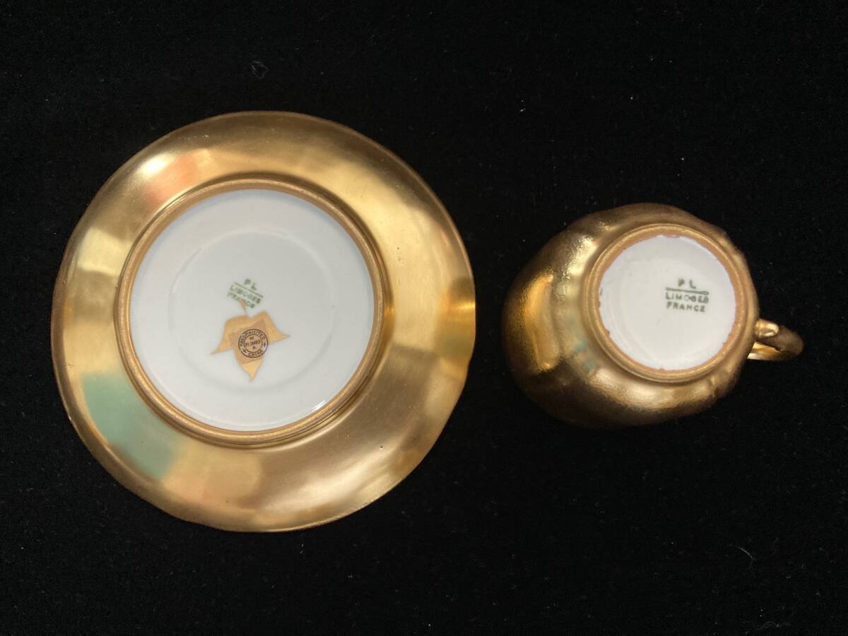 カップ&ソーサー:カップ径5.9㎝.高さ5.4㎝、ソーサ径12.8㎝.高さ1.6㎝ / 裏面にPL LIMOGES FRANCE、 HANDPAINTED PICKARD CHINAのプリント