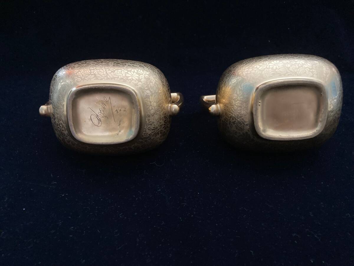 シュガー入れ:最大幅11.4㎝、ミルク入れ:最大幅8.5㎝. / 裏面にサインあり