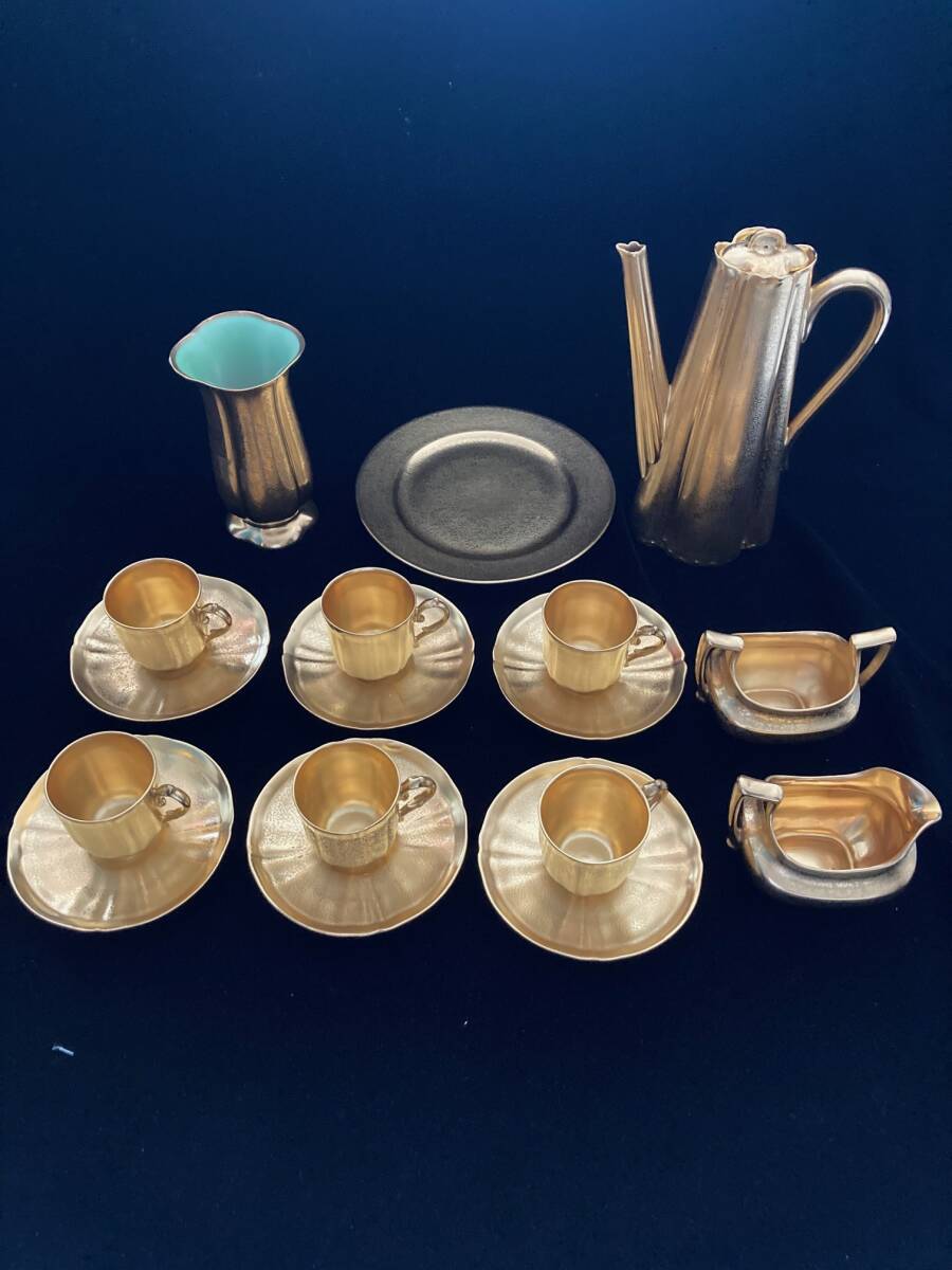 最初にリモージュのカップ&ソーサ6客セットを入手したのちに時間をかけてカップ&ソーサとセットに見える金彩で同じ肌感のポット、ケーキ皿、シュガー入れ、ミルク入れを集めました。花瓶はほんの少し一体感が足りませんが他は全くセットに見えると思います。(あくまで個人的な見解です。)