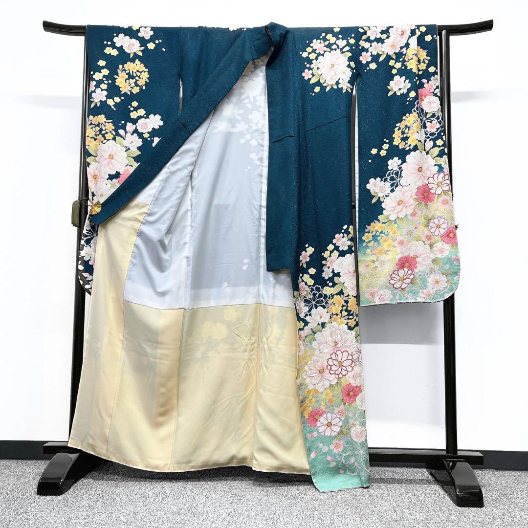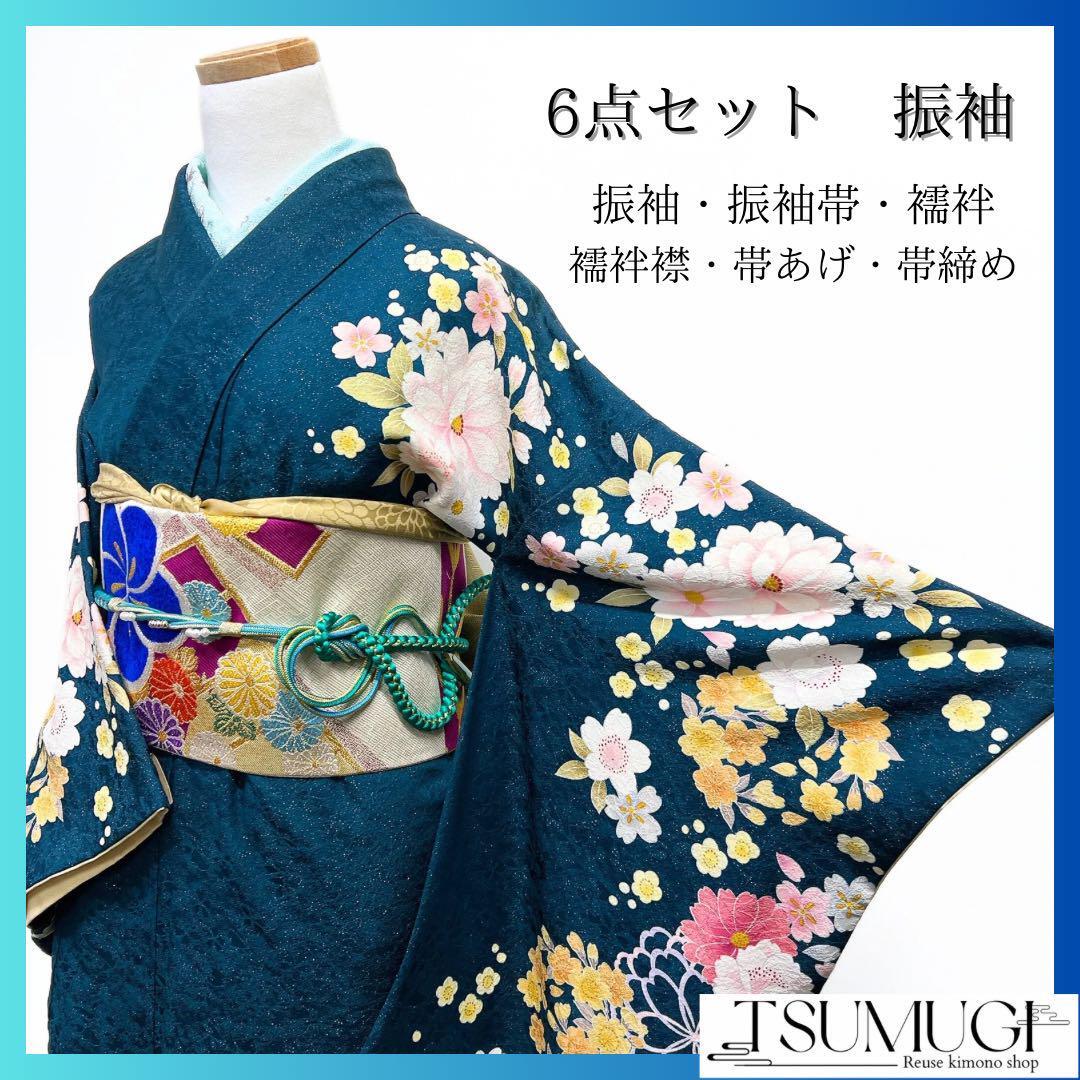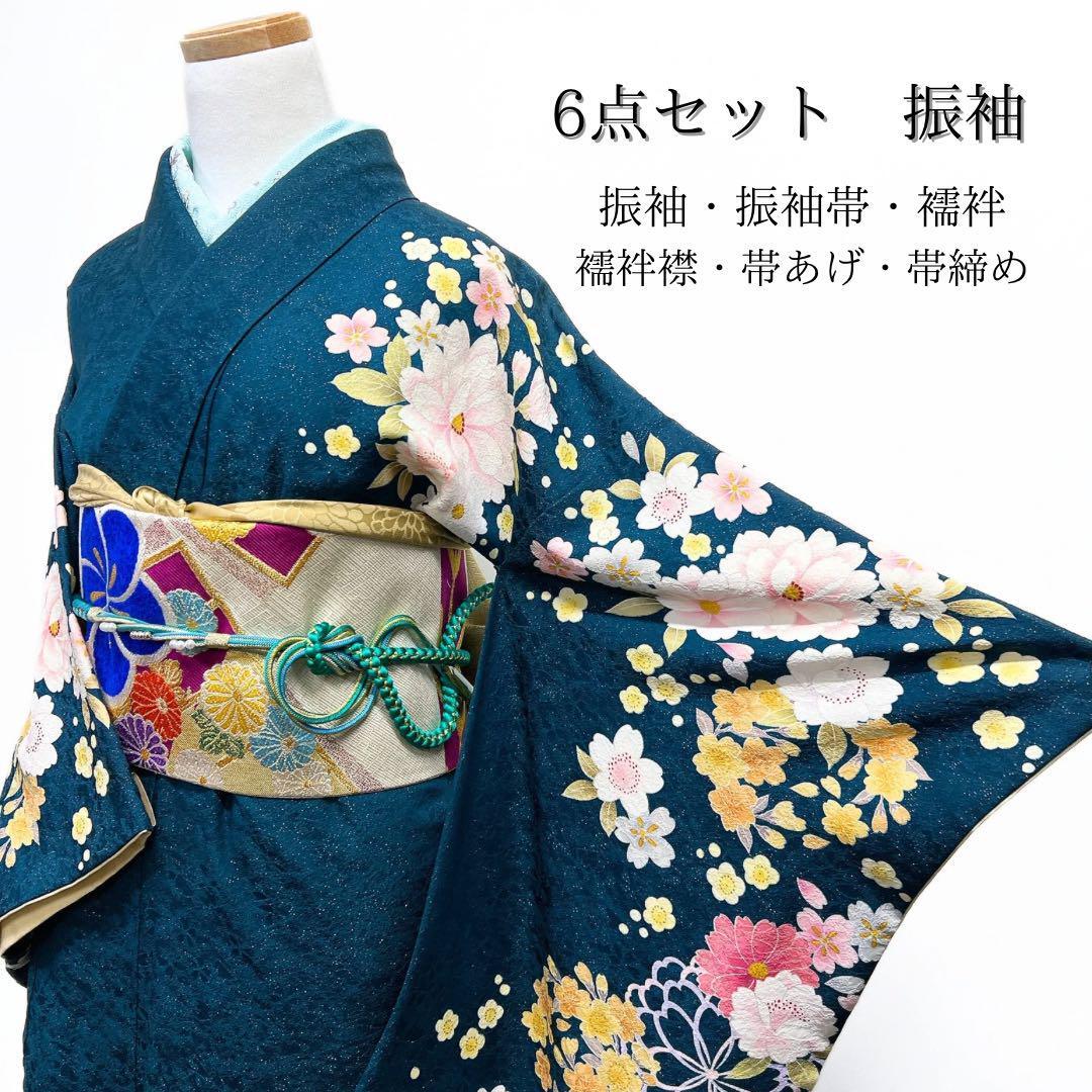 振袖6点セット 振り袖 袋帯 銀通し 花模様 成人式 着物 064w p
