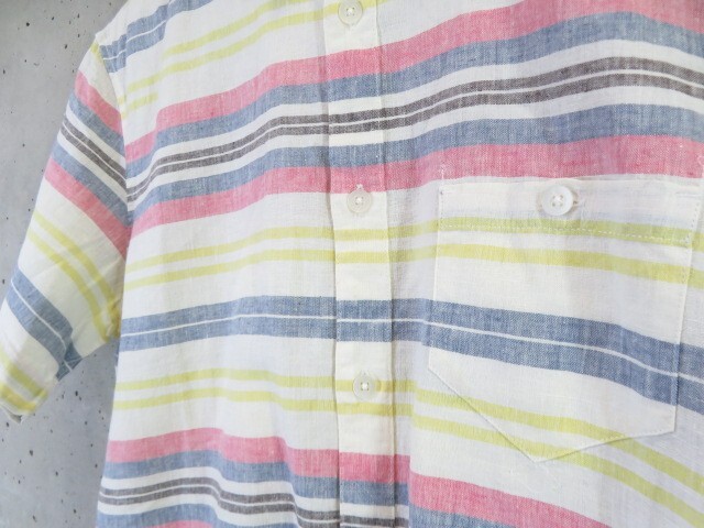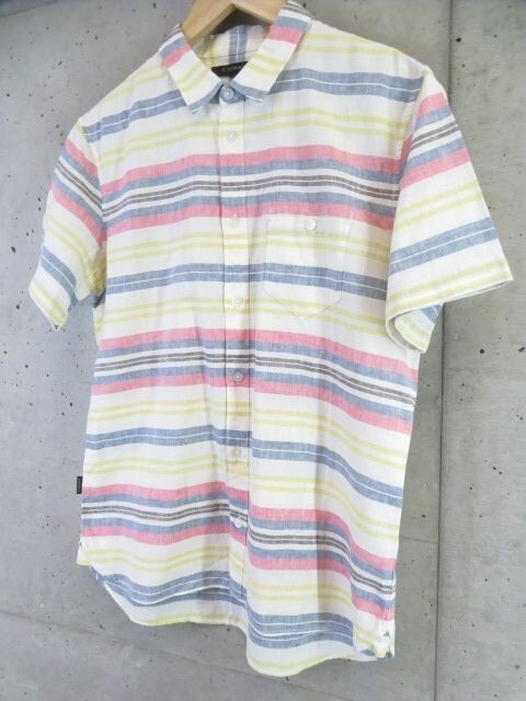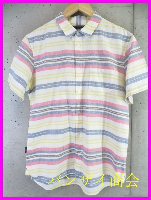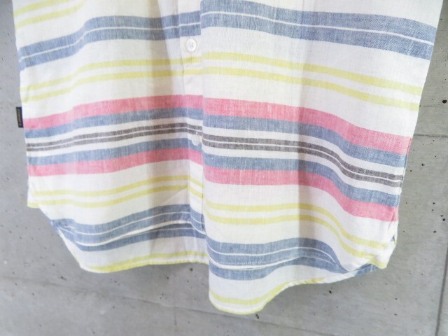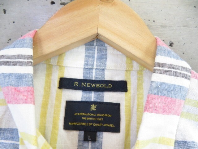 【送料300円可】005c563◆良品◆麻混素材◆R.NEWBOLD アールニューボールド 半袖ボーダーリネンシャツ L/ポールスミス/ジャケット/パンツ