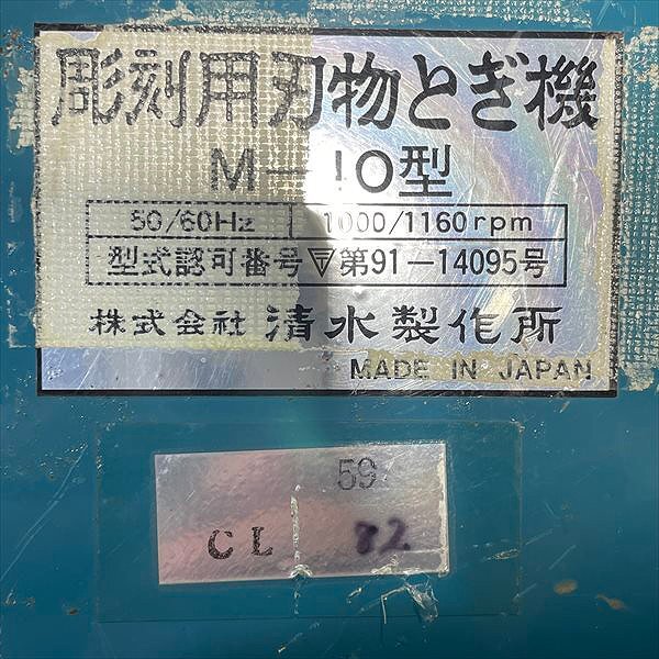 A19s241690 清水製作所 M-10型 彫刻用刃物 とぎ機 【100V 50/60Hz】【通電確認済み/動画あり】