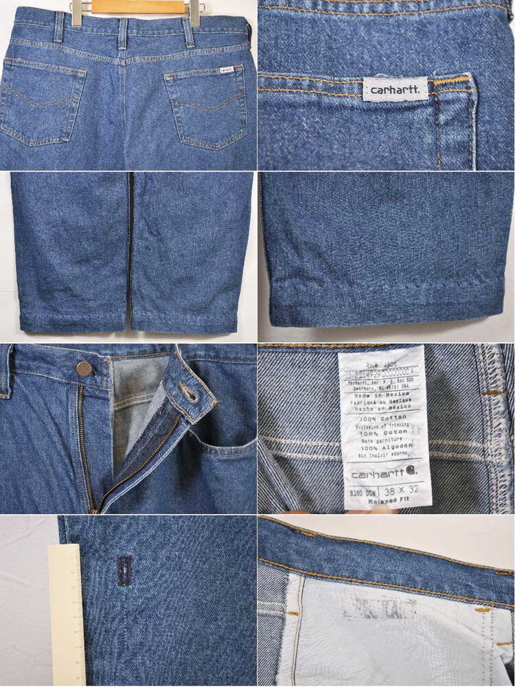 商品詳細 | USEDならではの風合い!「Carhartt」デニムパンツです!デニムブルーベースにシンプルな5ポケットデザインなどがとても良い雰囲気ですので様々な場面で大活躍してくれます!飽きのこない1本ですので本当にお勧めです!なおフロントはジッパーフライとなります。 ■状態 USEDグレード[B] 1. ボディ:洗濯等による色あせ・縫い合わせ部などのスレや微細なスリキレ・右太もも付近ミシンによる小たたきリペア・両裾手縫いによる裾上げ・薄い汚れ・細かい汚れ・細かい生地キズなどあり ※USED商品ですのでそれなりの使用感、細かいダメージがあります。予めご了承ください。 状態について 個体差はありますが、記載していない小穴や小ダメージ、裾やポケット縁などのスリキレ・薄い汚れ、細かい汚れ、その他などある場合があります。 またもともとUSED加工(ダメージ加工やウォッシュド加工など)が施されている場合もあり、実際の使用感との境界線はあいまいですのでご了承下さい。 上記を含め「それなりの使用感」としており、お安めの価格設定とさせて頂きますので予めご了承下さい。 ■サイズ[単位:約/cm] 表記・・・38×32 胴囲・・・102 全長・・・110.5 股下・・・77.5 モモ幅・・・31 裾幅・・・24 ※サイズは大きめで実寸計測おおよそW40相当となります。 ※裾上げされている場合がありますので実寸を基準にご参考下さい。 ※ブランドや年代によってもサイズ感が異なりますので実寸を必ずご参考下さい。 ■商品詳細 ブランド・・・Carhartt 商品名・・・デニムパンツ 生産国・・・メキシコ 製造年・・・- - - - 色&柄・・・デニムブルー 素材・・・綿:100% |