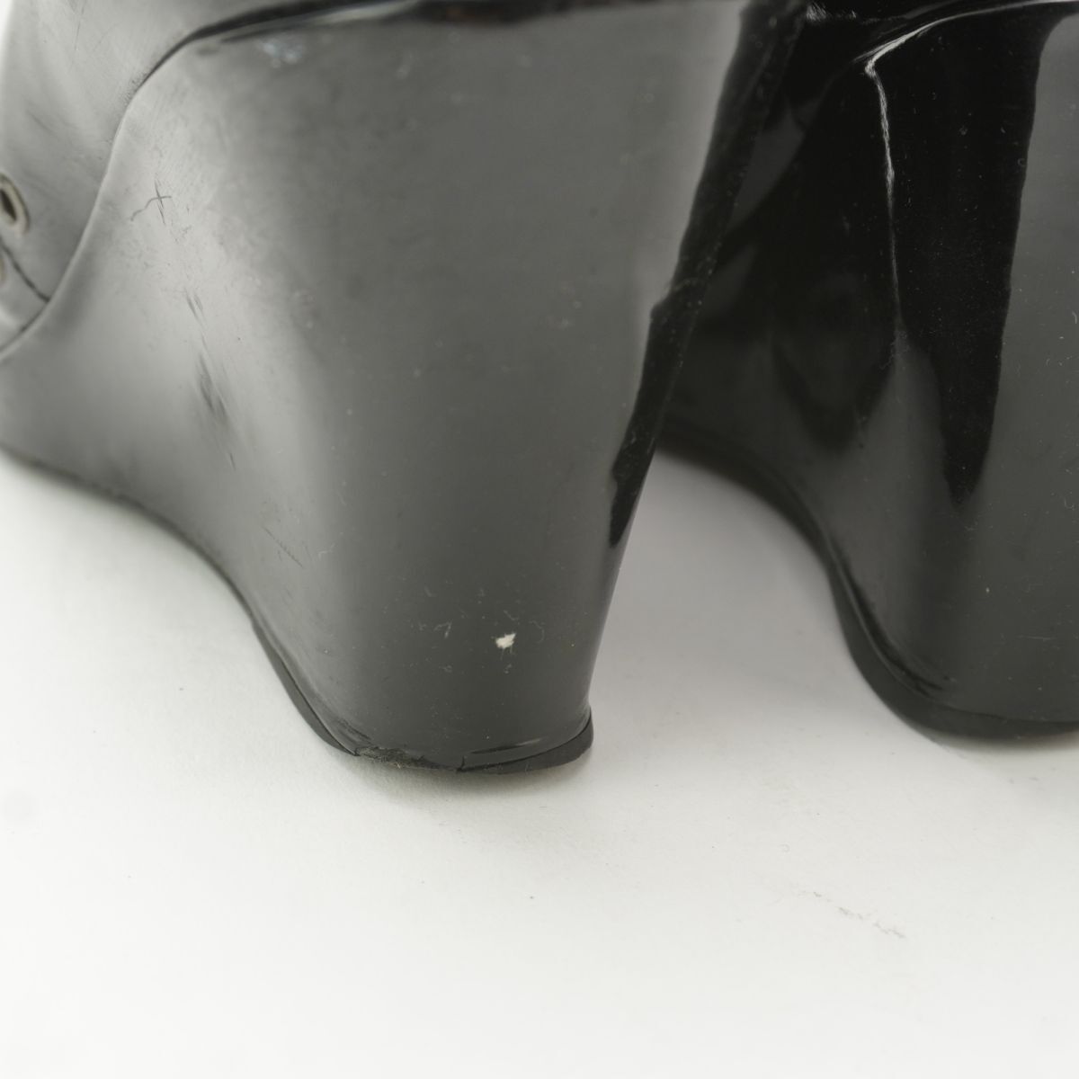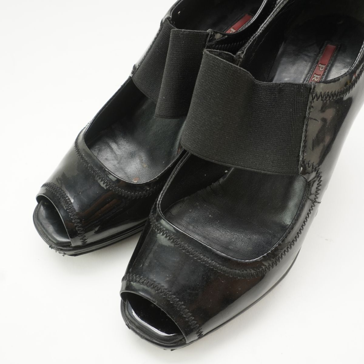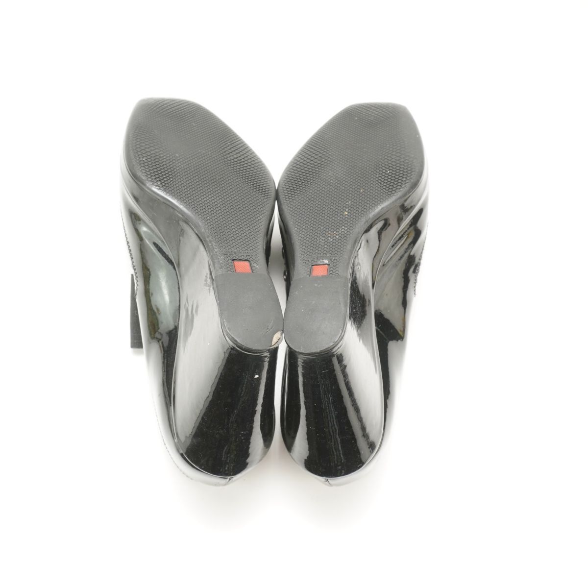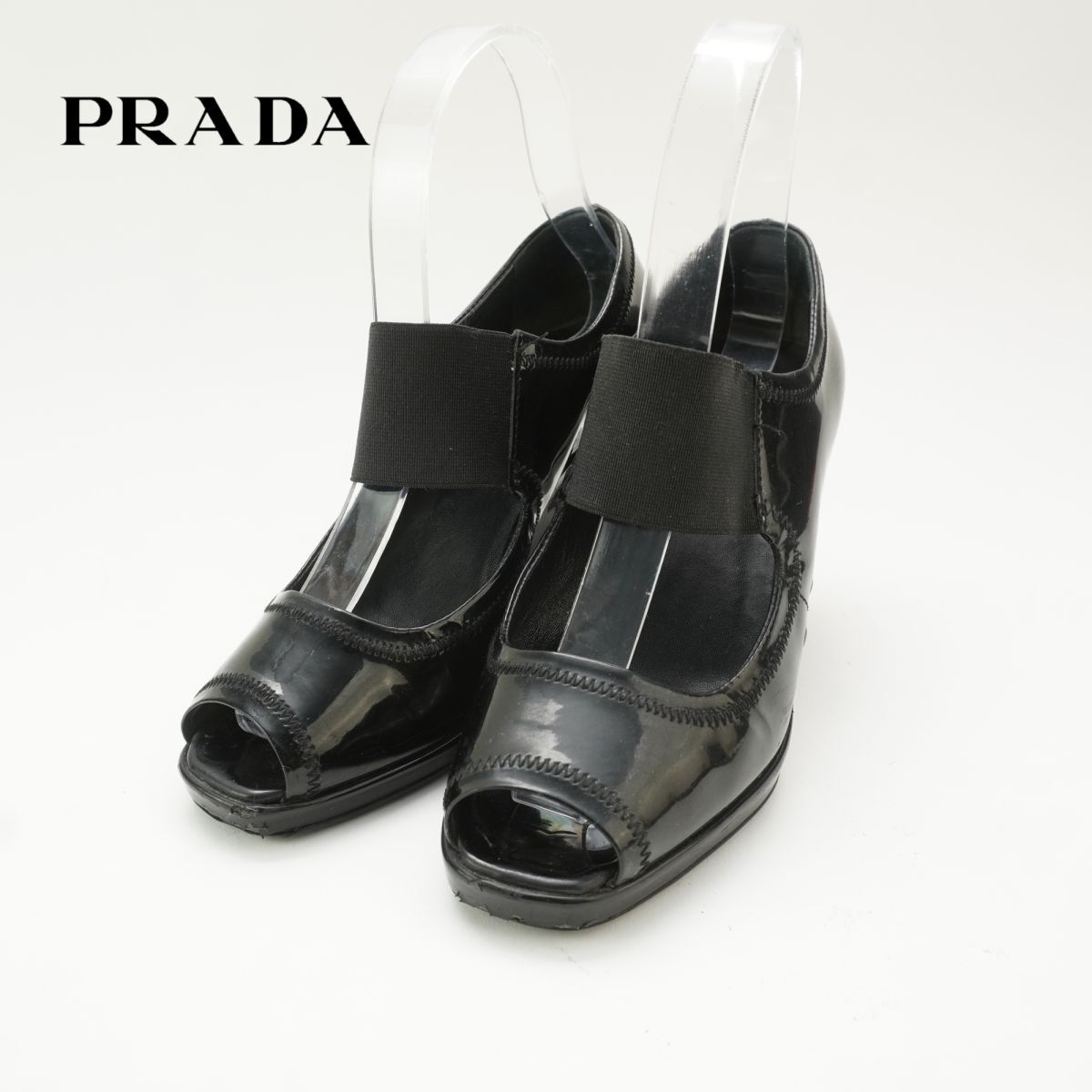 PRADA プラダ 35 22.0 パンプス イタリア製 ウェッジソール オープントゥ エナメル 黒 ブラック/RC117