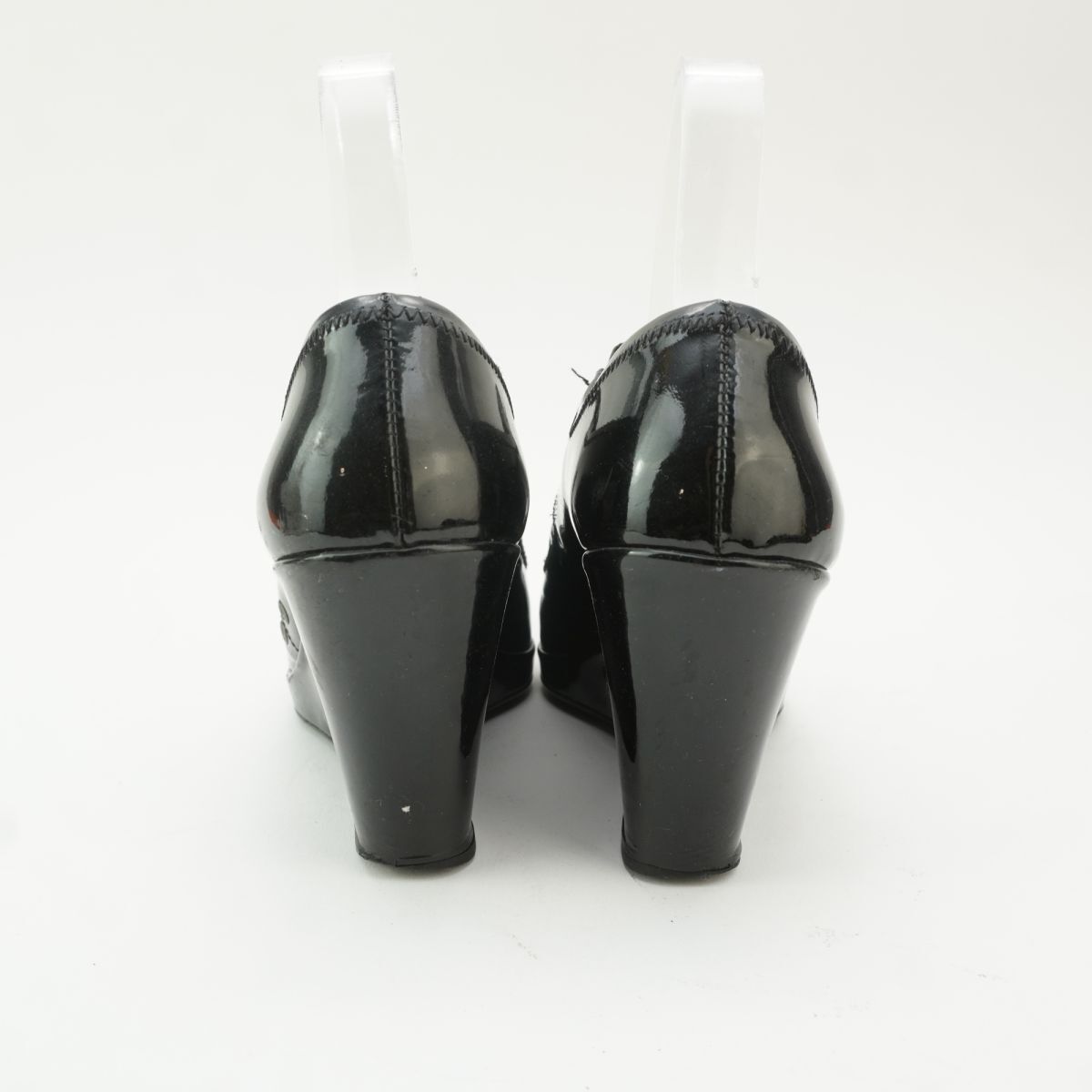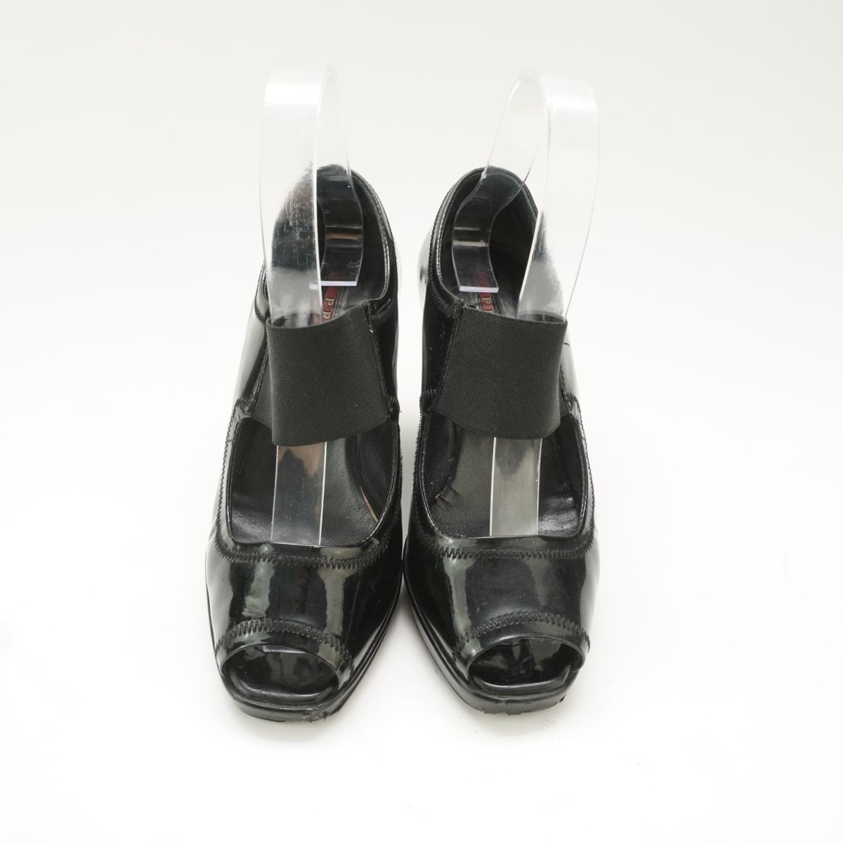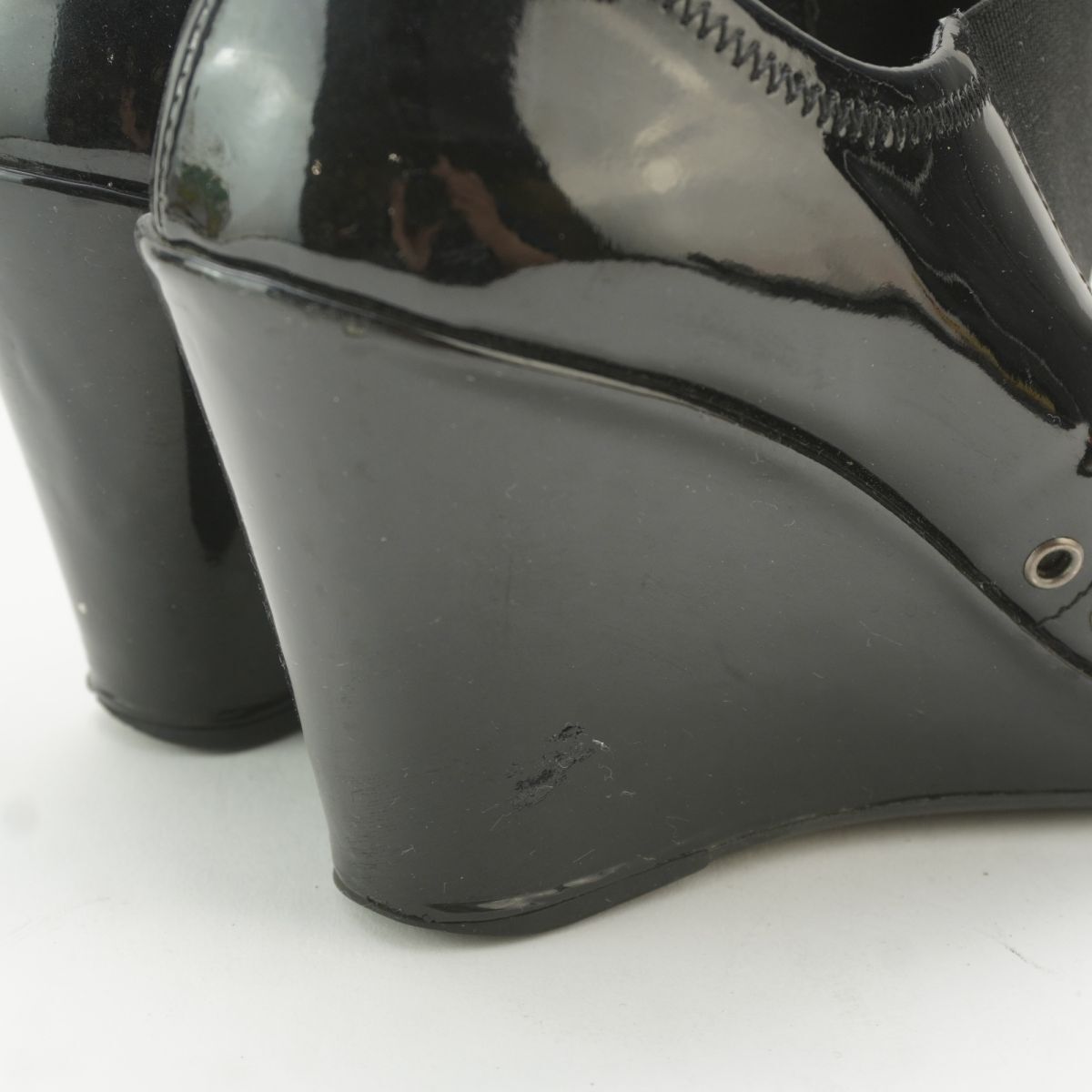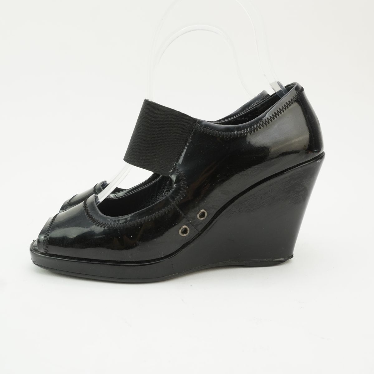 PRADA プラダ 35 22.0 パンプス イタリア製 ウェッジソール オープントゥ エナメル 黒 ブラック/RC117