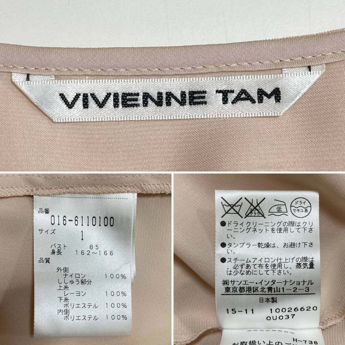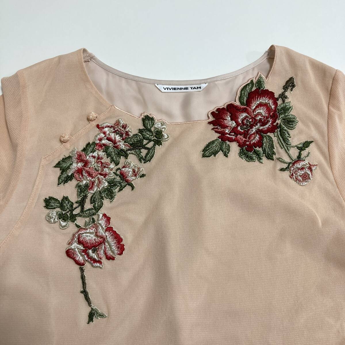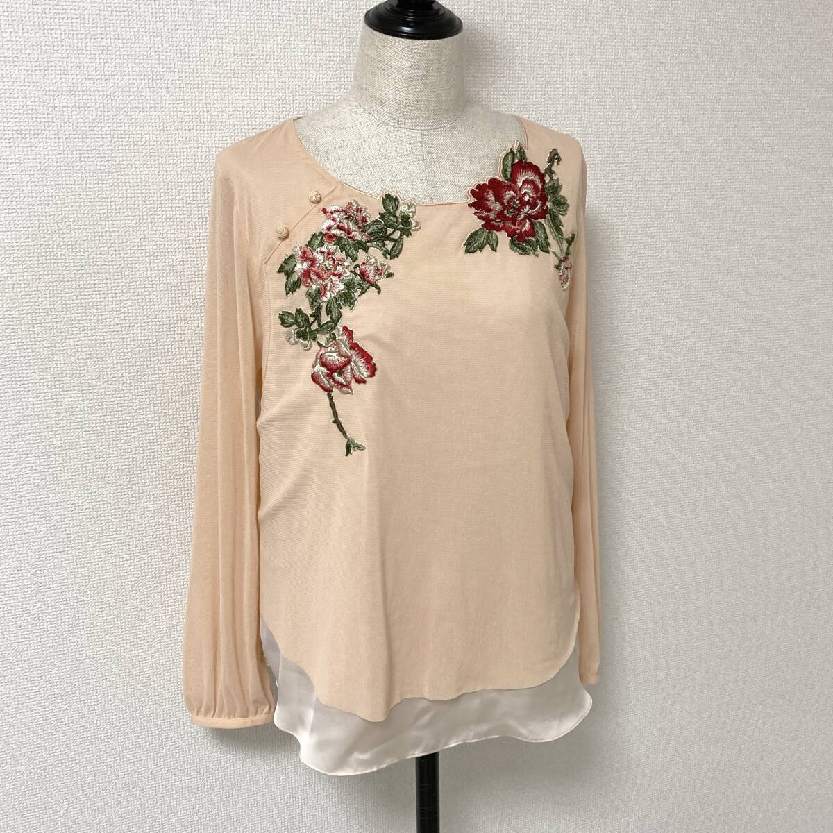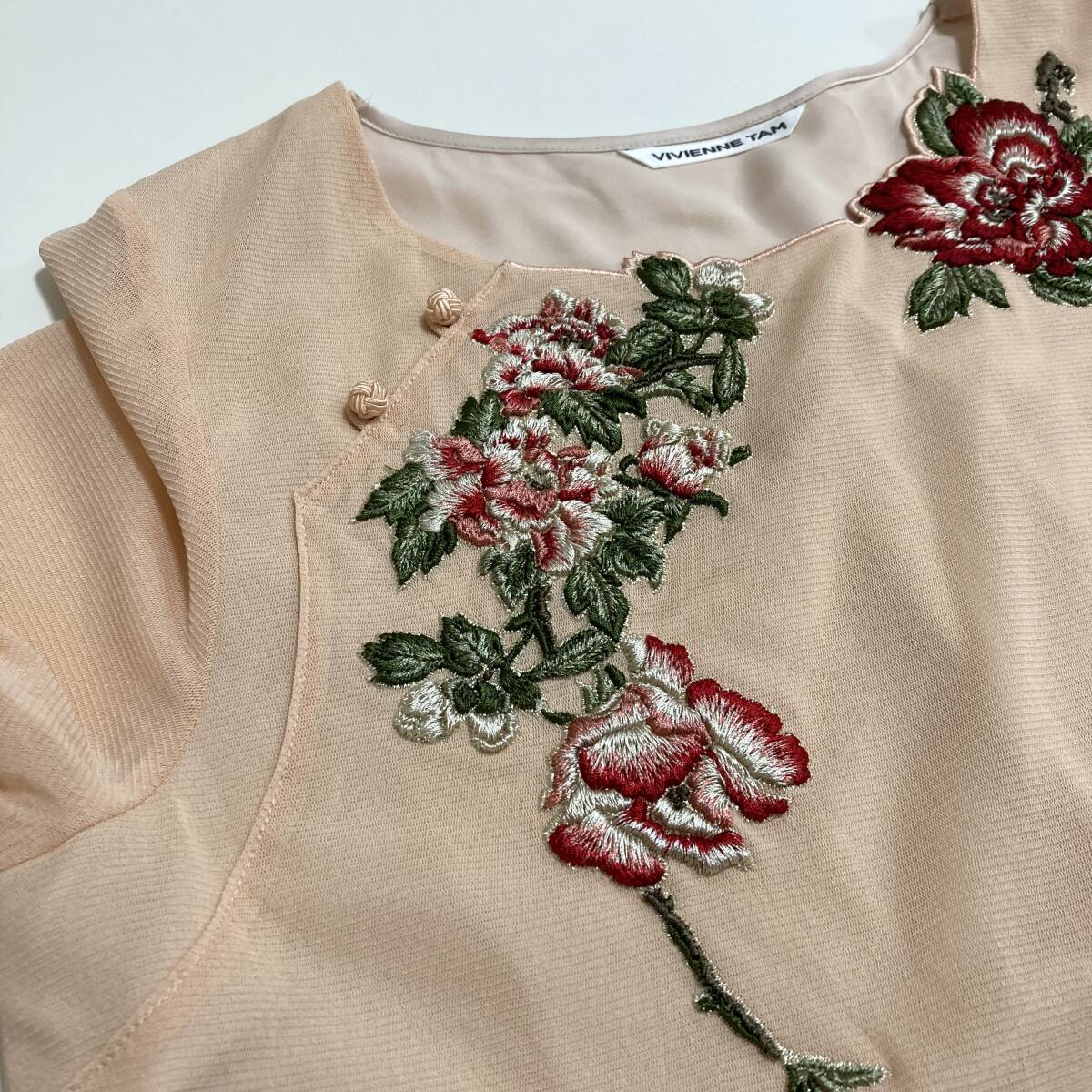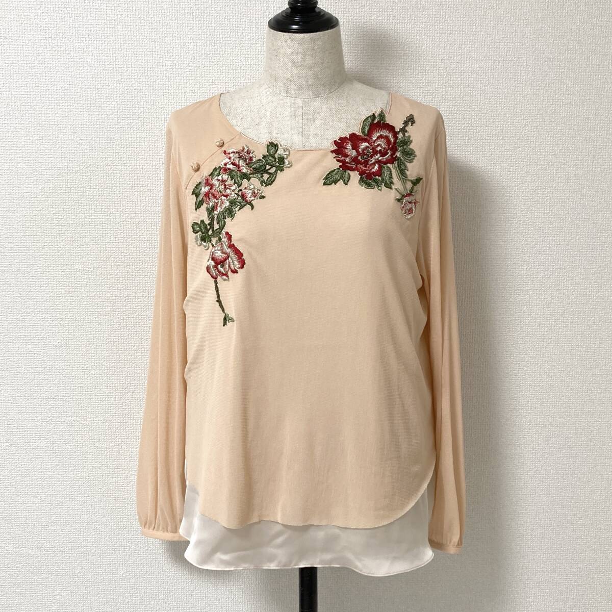 VIVIENNE TAM パワーネット サテン レイヤード 花 刺繍 長袖 チャイナ カットソー ピンクベージュ系