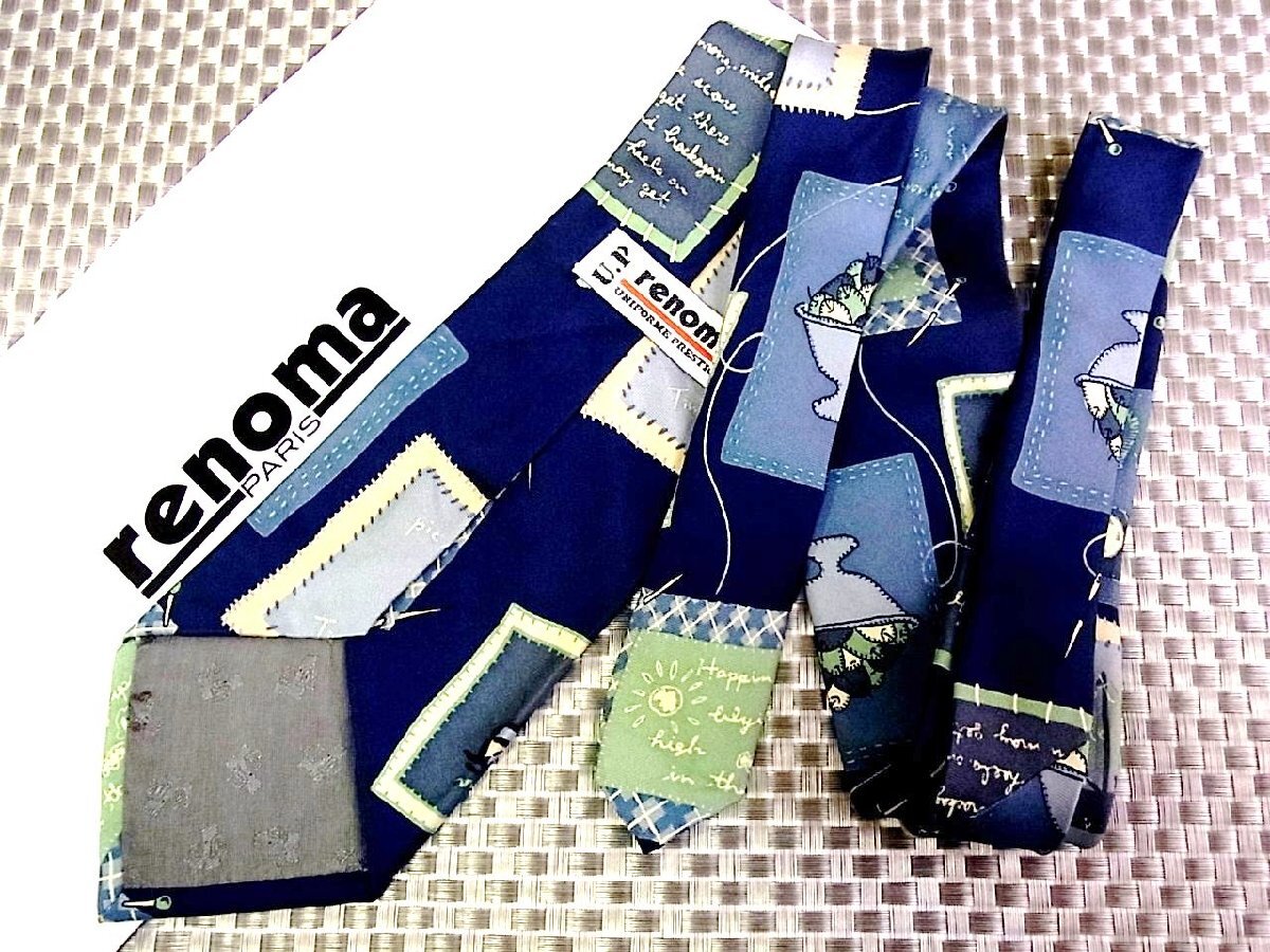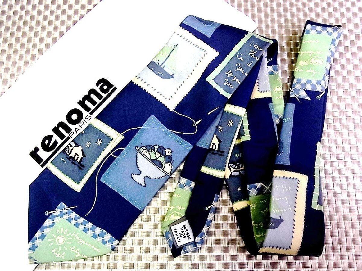 ★RB2209★【洋ナシ 船 家 刺繍 針 糸 柄】レノマ【美品】ネクタイ
