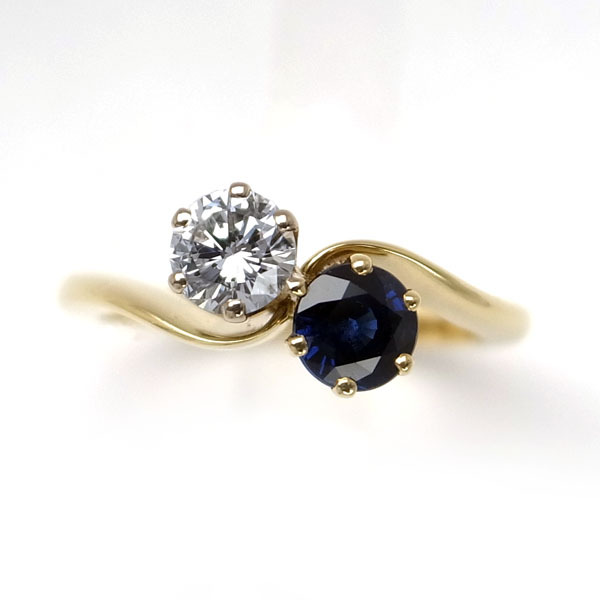 【緑屋質屋】ガラード(GARRARD) ダイヤ・サファイアリング K18YG【中古】