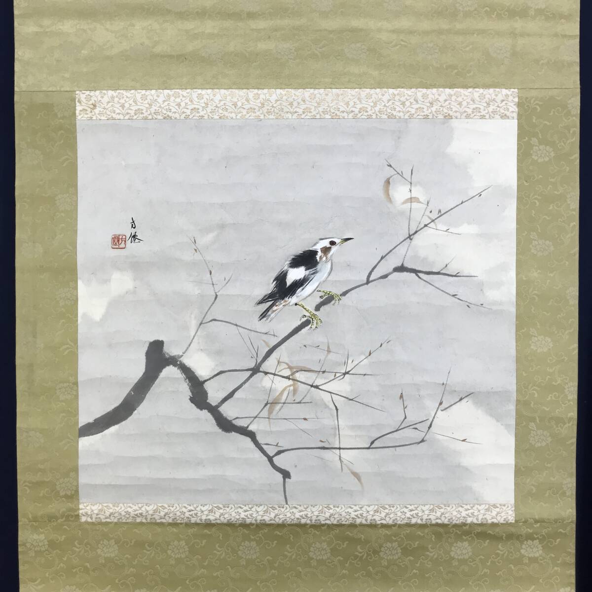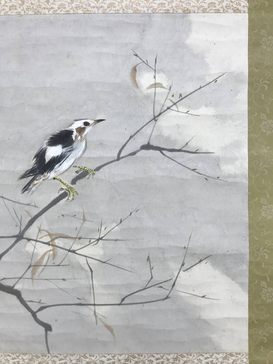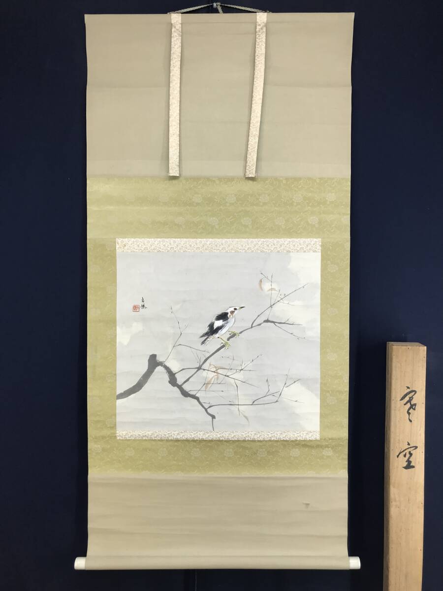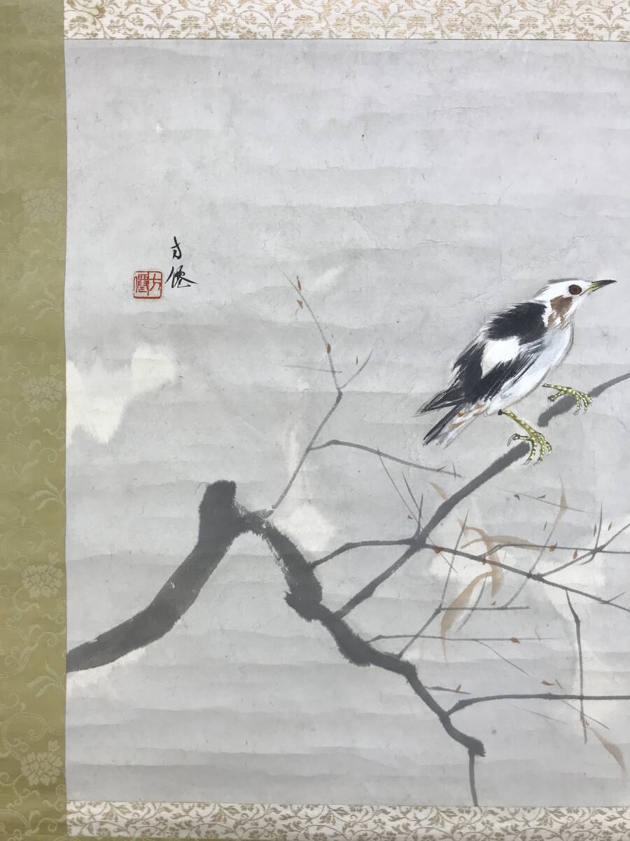 真作/東原方僊/寒空に小禽図/横物/小鳥図/花鳥図/掛軸☆宝船☆AG-386