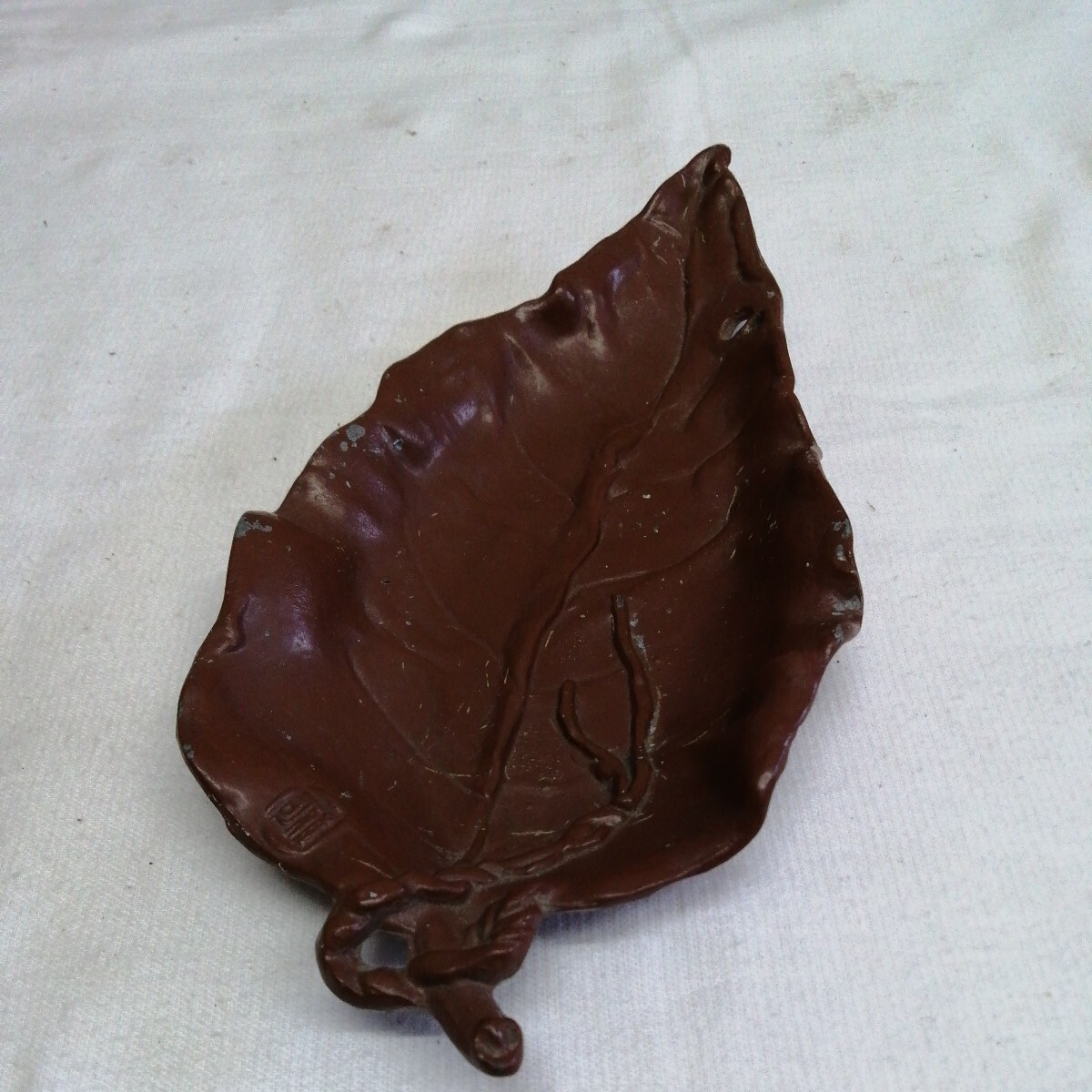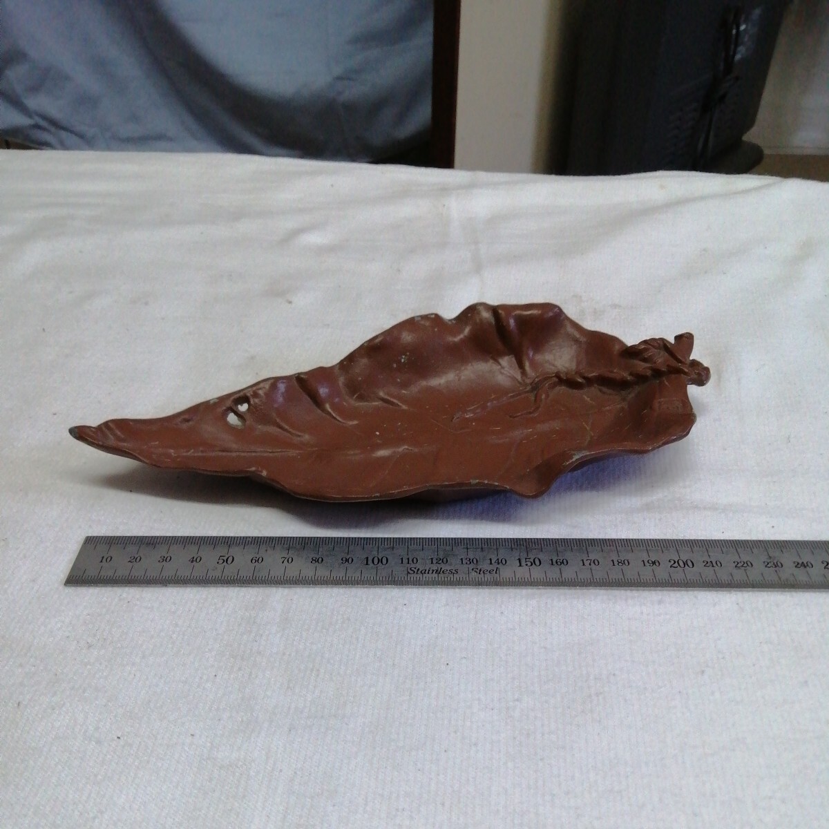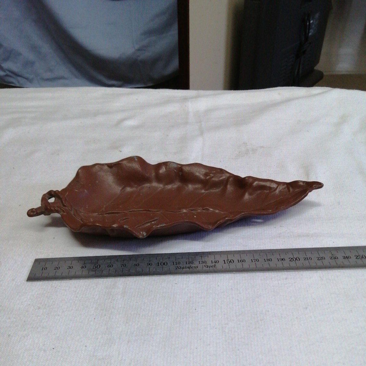 木の葉 釣り銭皿 お釣り おつり 金属製 真鍮 重い (約24.7×11.5cm) 送料520円可能
